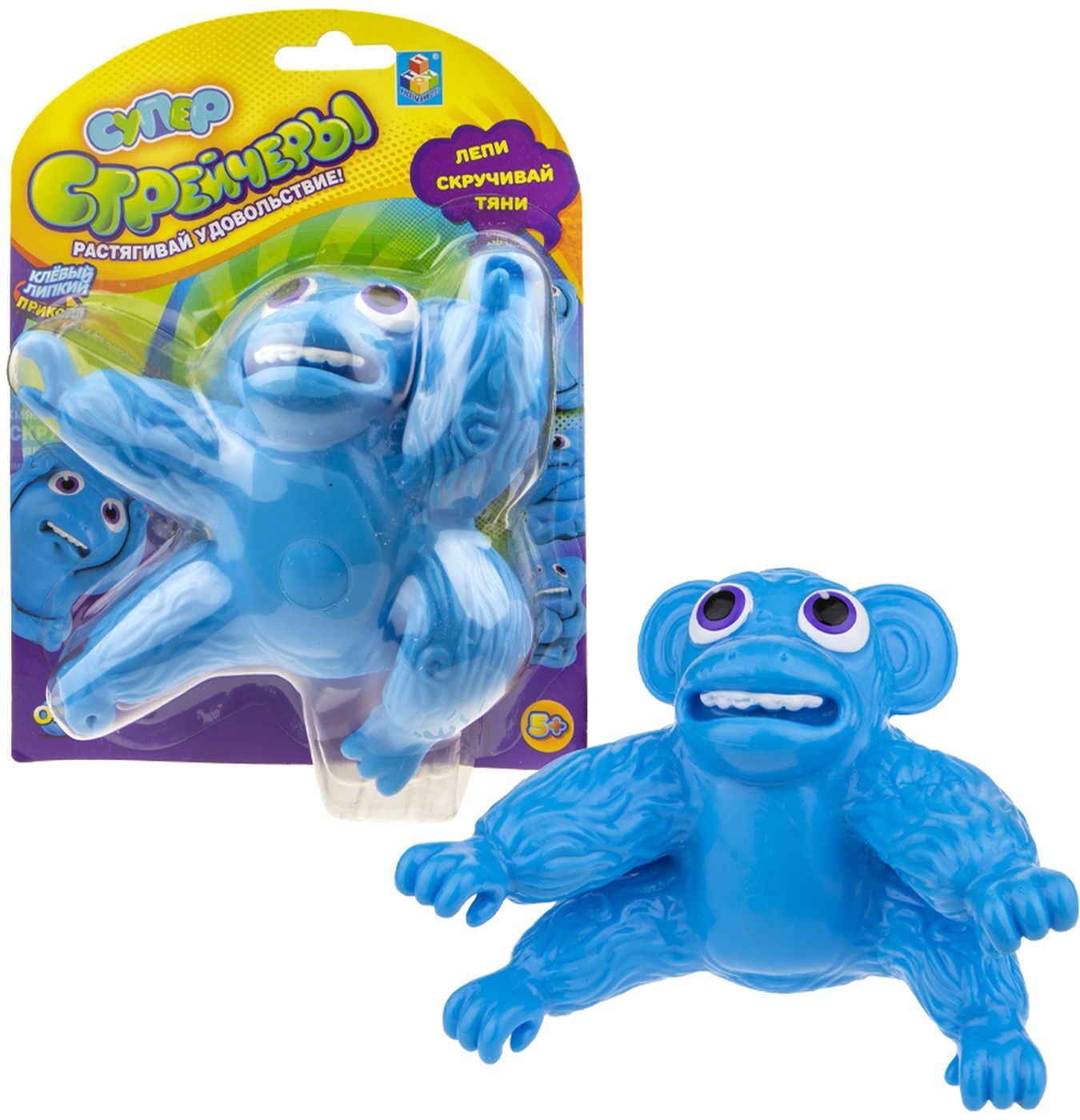 Антистрессовая игрушка 1TOY Супер Стрейчеры Облизьяна, синий, 11 см