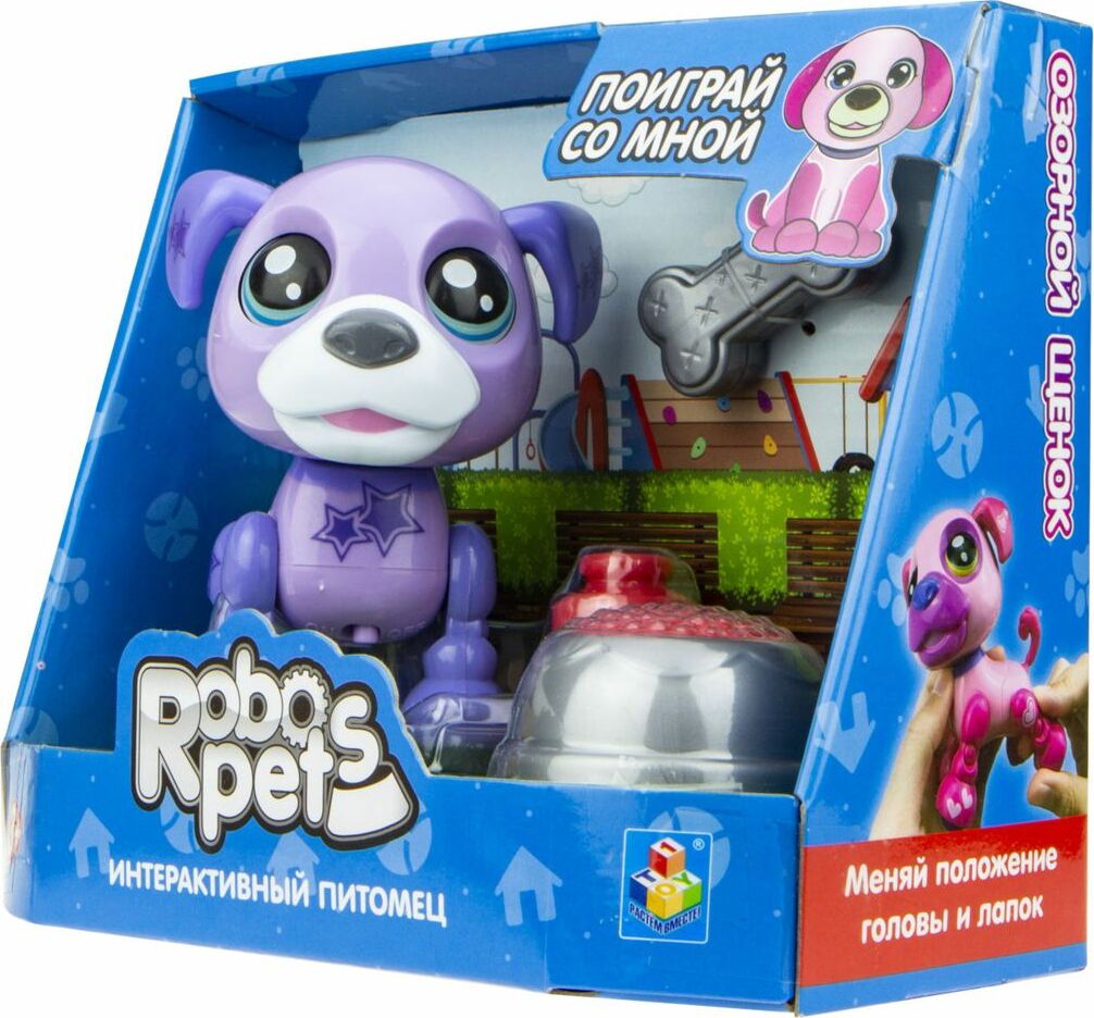 Интерактивная игрушка 1TOY Озорной щенок, Т16939, фиолетовый