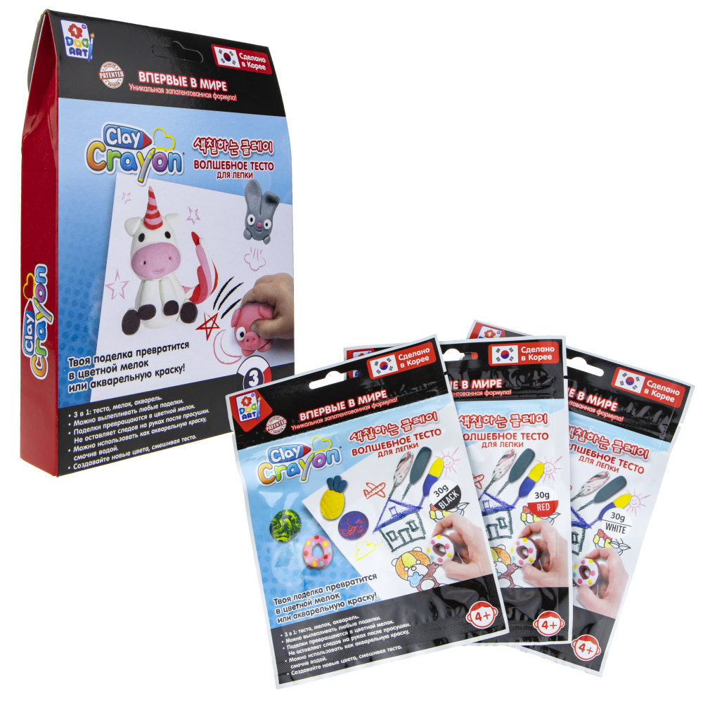 Набор тесто-мелков Clay Crayon "Единорог", 3 цвета по 30 гр, в коробке (Т19013)