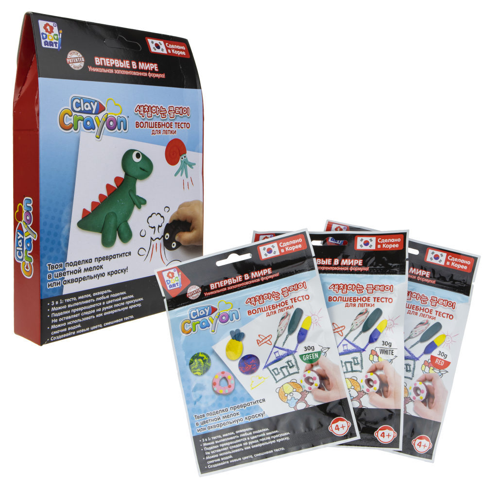 Набор тесто-мелков Clay Crayon "Динозавр", 3 цвета по 30 гр, в коробке (Т19012)