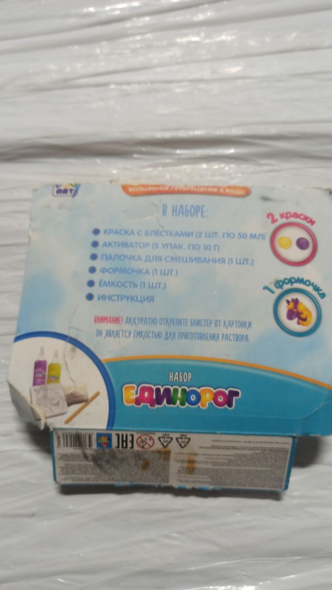 Набор 1 Toy AQUA ART Единорог, 1 формочка, 2 краски c блёстками по 50 мл. Уцененный товар