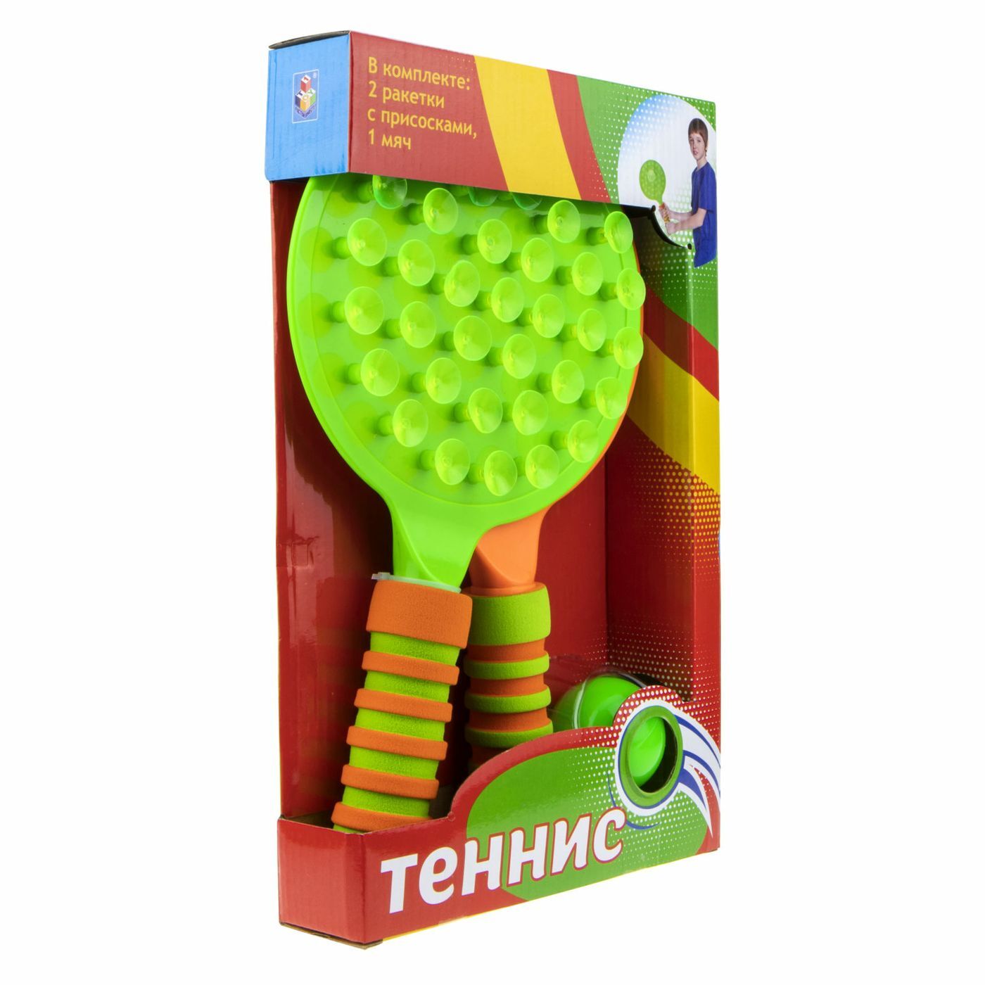 Набор для подвижных игр 1TOY Ракетки, с присосками, мяч, салатовый