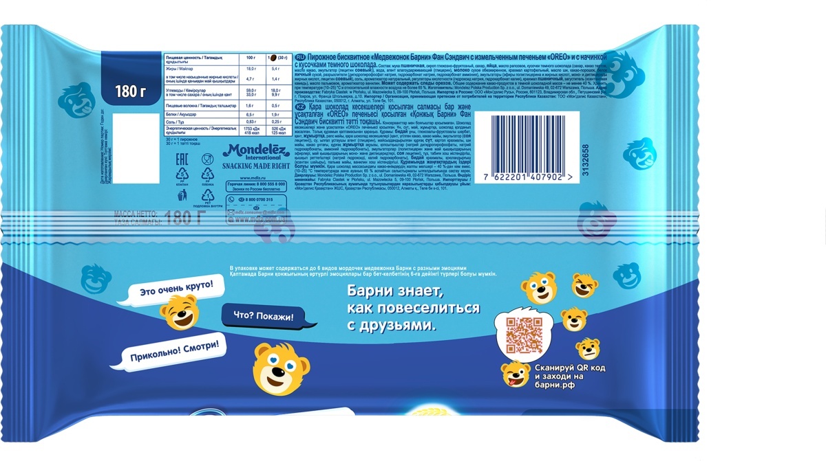 БАРНИ МЕДВЕЖОНОК пирожное бисквитное шоколад 30г Набор по 10шт