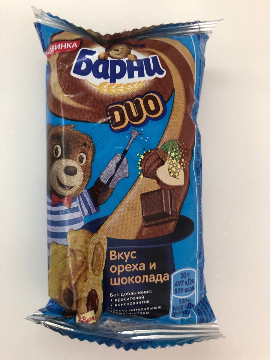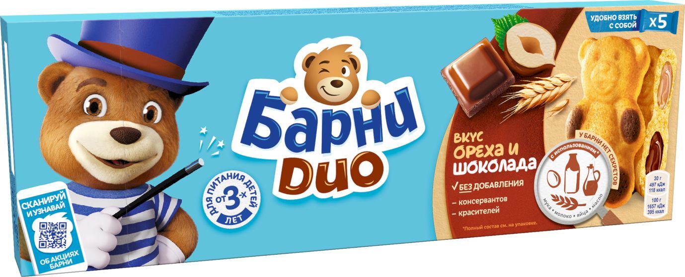 Пирожное Медвежонок Барни бисквитное с шоколадной начинкой и со вкусом ореха, 150 г