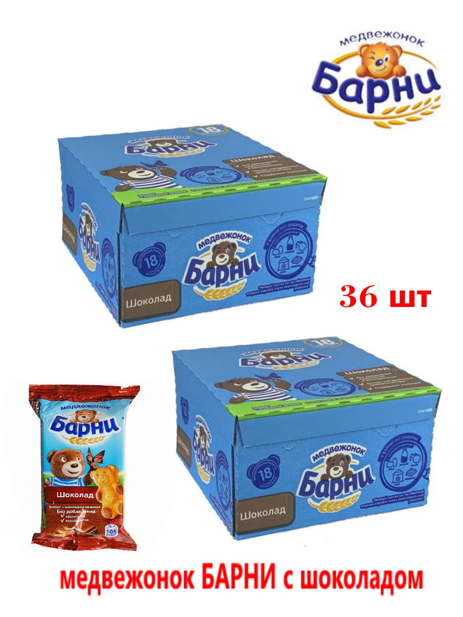 Медвежонок Барни, пирожное со вкусом шоколада, 2 упаковки, 36 шт