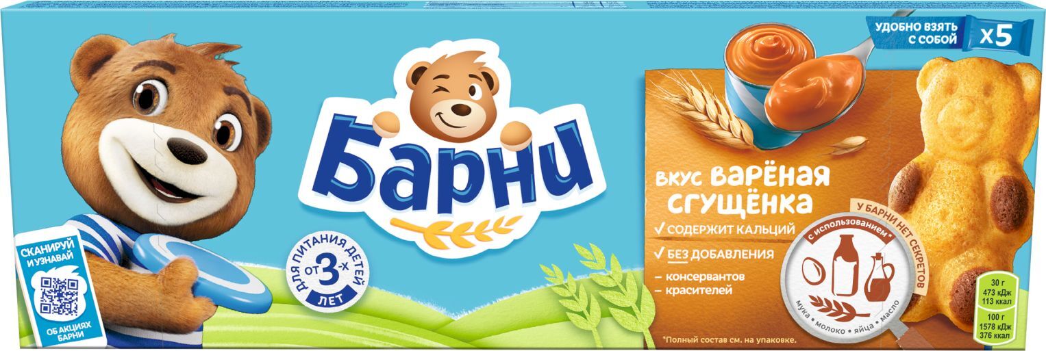 Пирожное "Медвежонок Барни" бисквитное с молочной начинкой, 150г