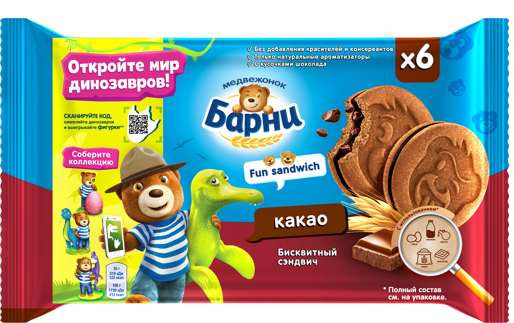 Пирожное Медвежонок Барни Фан Сэндвич, какао + темный шоколад, 180 г