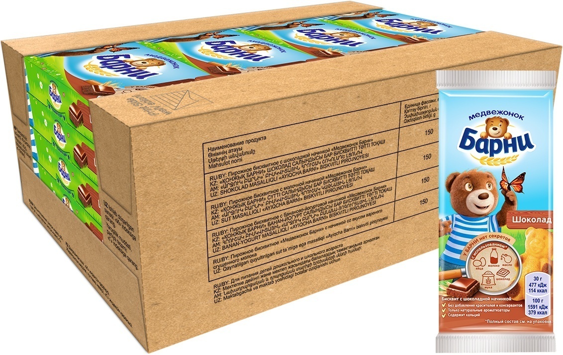Медвежонок Барни бисквит с шоколадной начинкой, 150 г (10 упаковок)