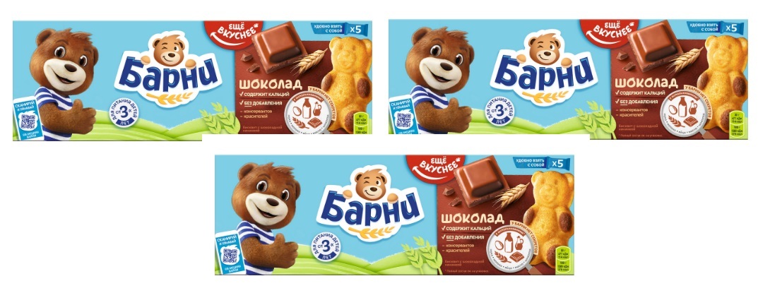 Пирожное бисквитное МЕДВЕЖОНОК БАРНИ с шоколадной начинкой, 5х30г, 3 упаковки
