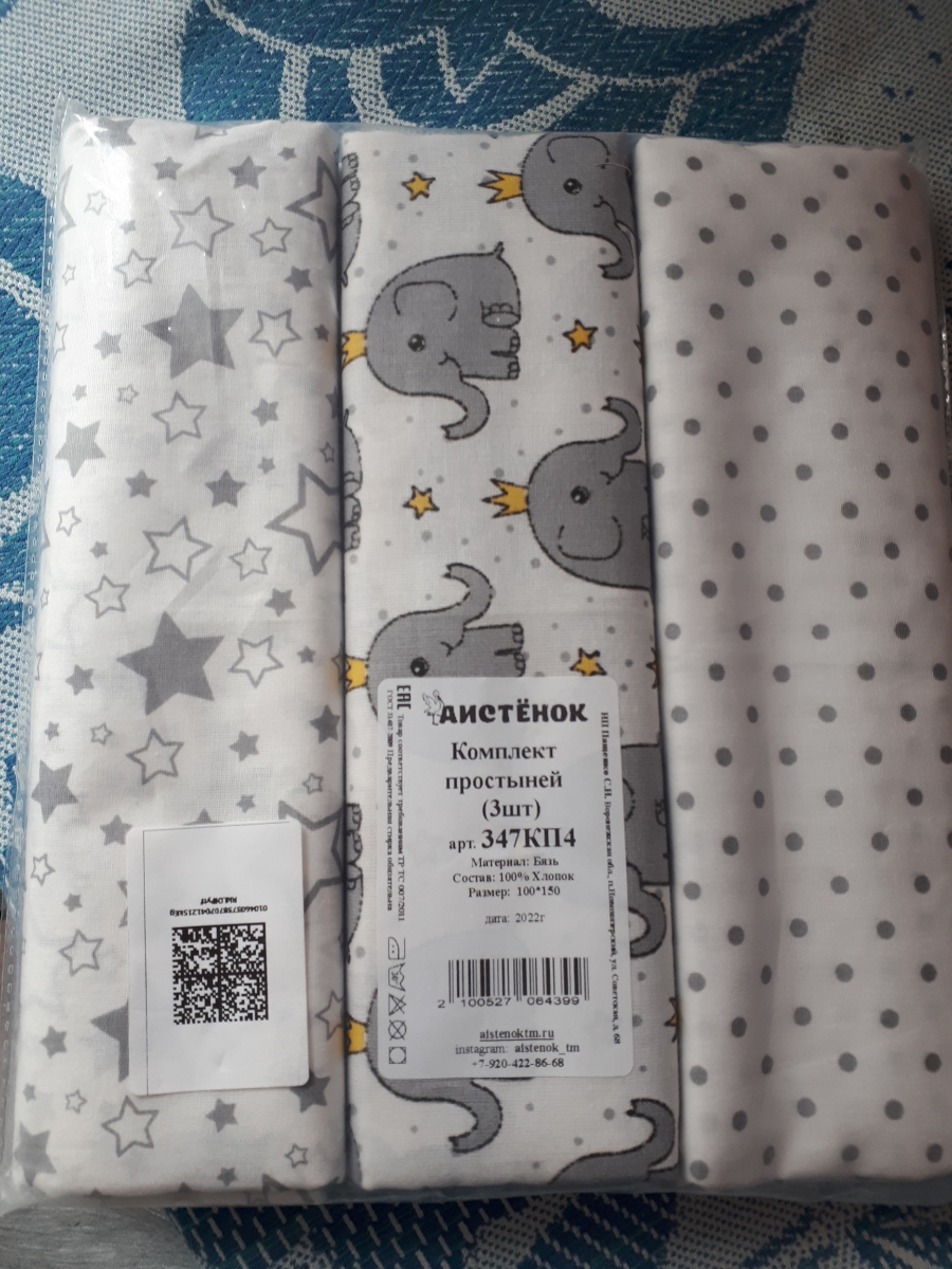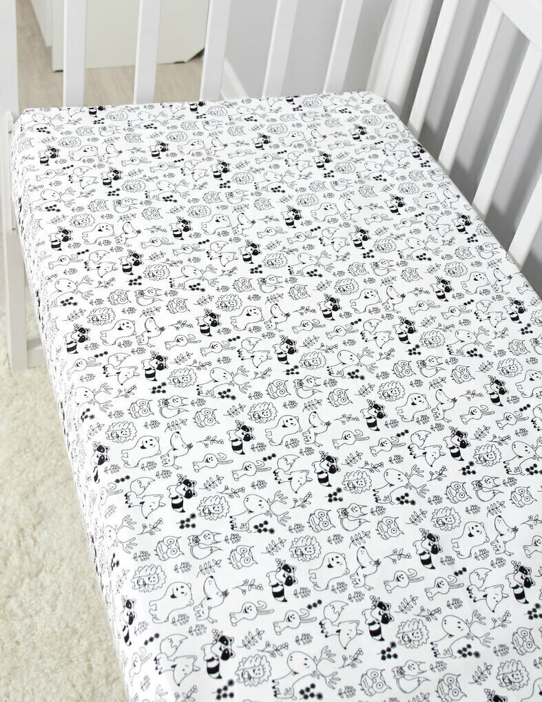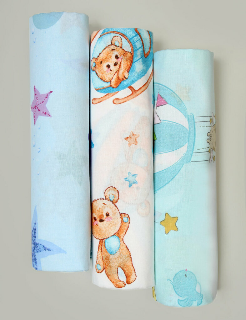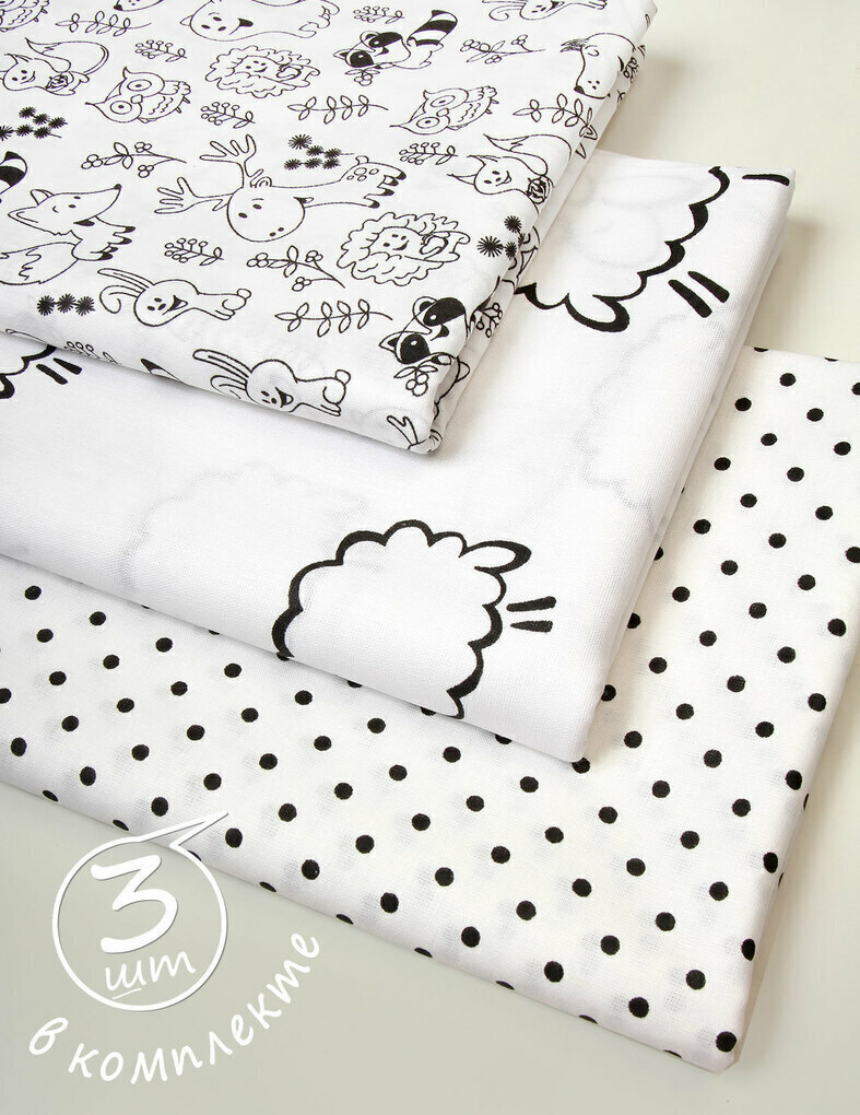Простыня Аистёнок 100х150 см, Бязь, 3шт Бязь, 100x150, Белый, Черный