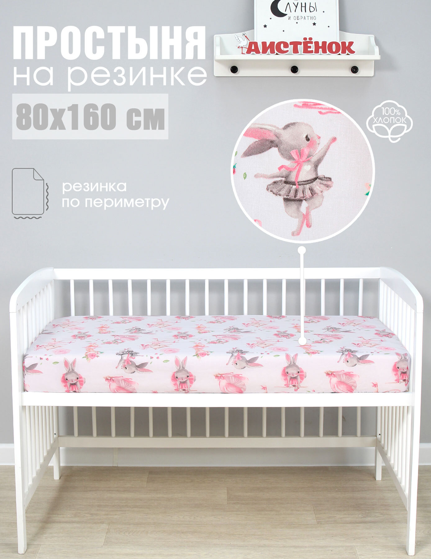 Простыня Аистёнок Резинка, 1 шт Бязь, 80x160, Вид №77
