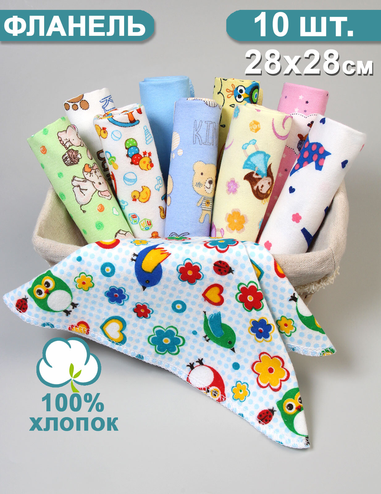 Салфетки фланелевые Аистёнок 28х28 см, 10 шт