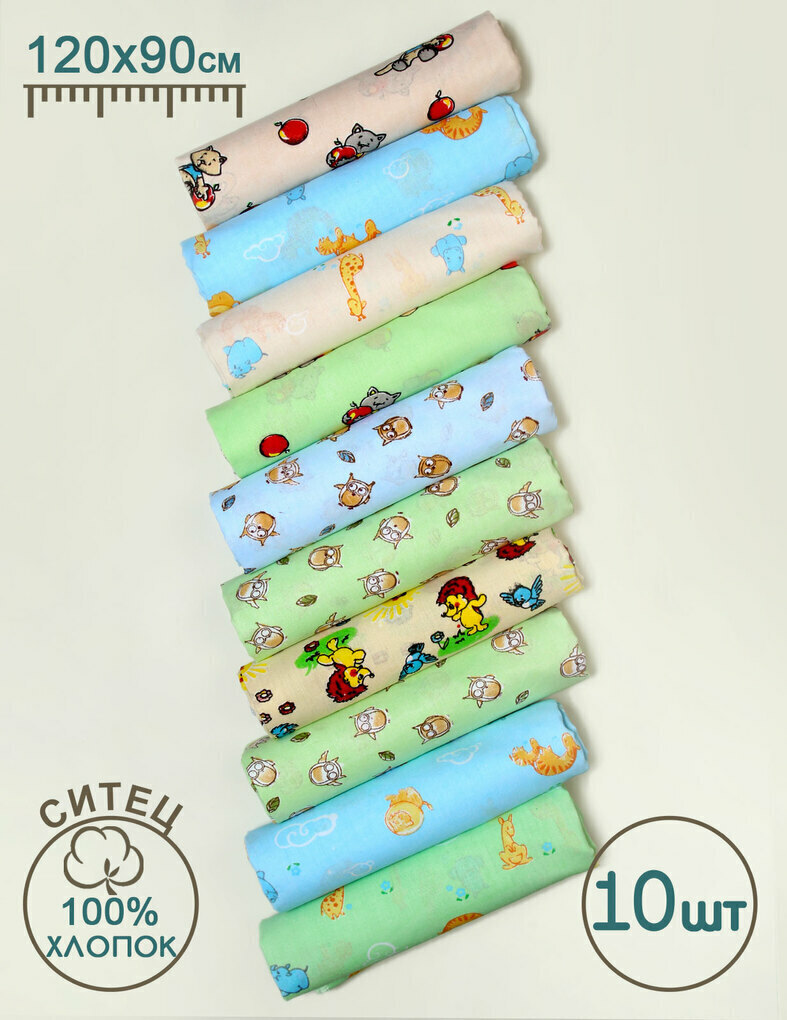 Пеленка текстильная Аистёнок 90 х 120 см, Ситец, 10 шт