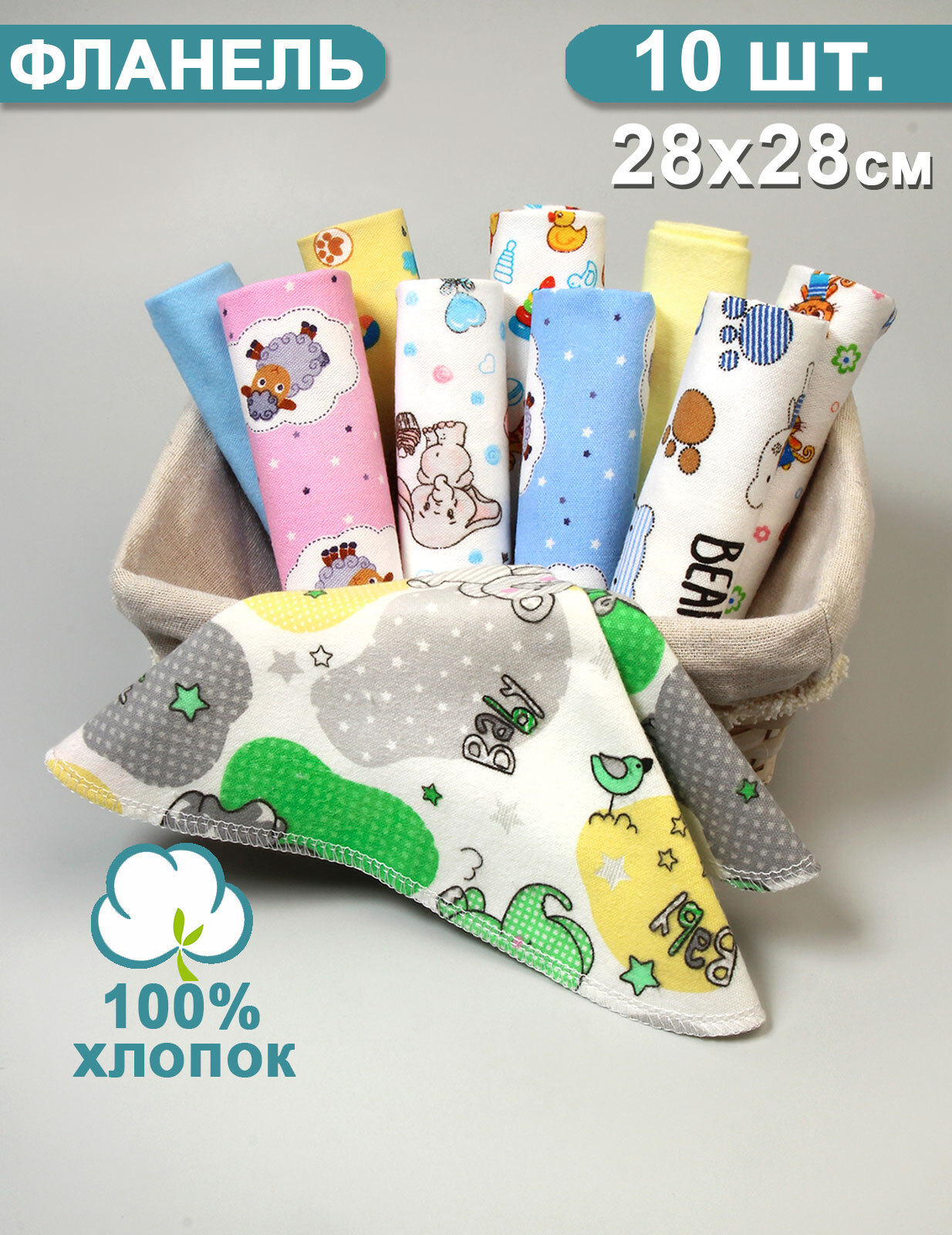 Салфетки фланелевые Аистёнок 28х28 см, 10 шт