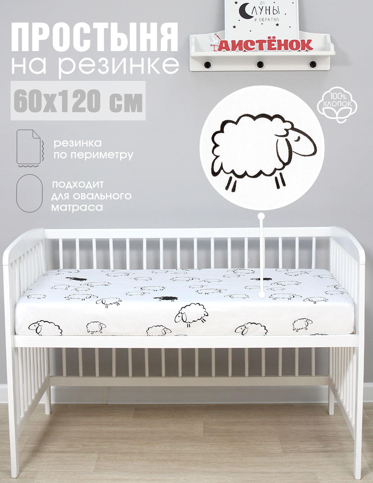 Простыня Аистёнок Резинка, 1 шт Бязь, 60x120, Вид №53