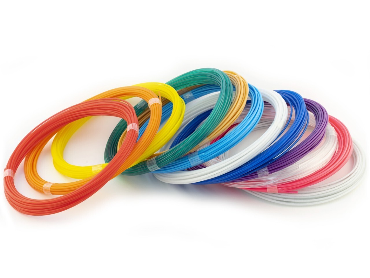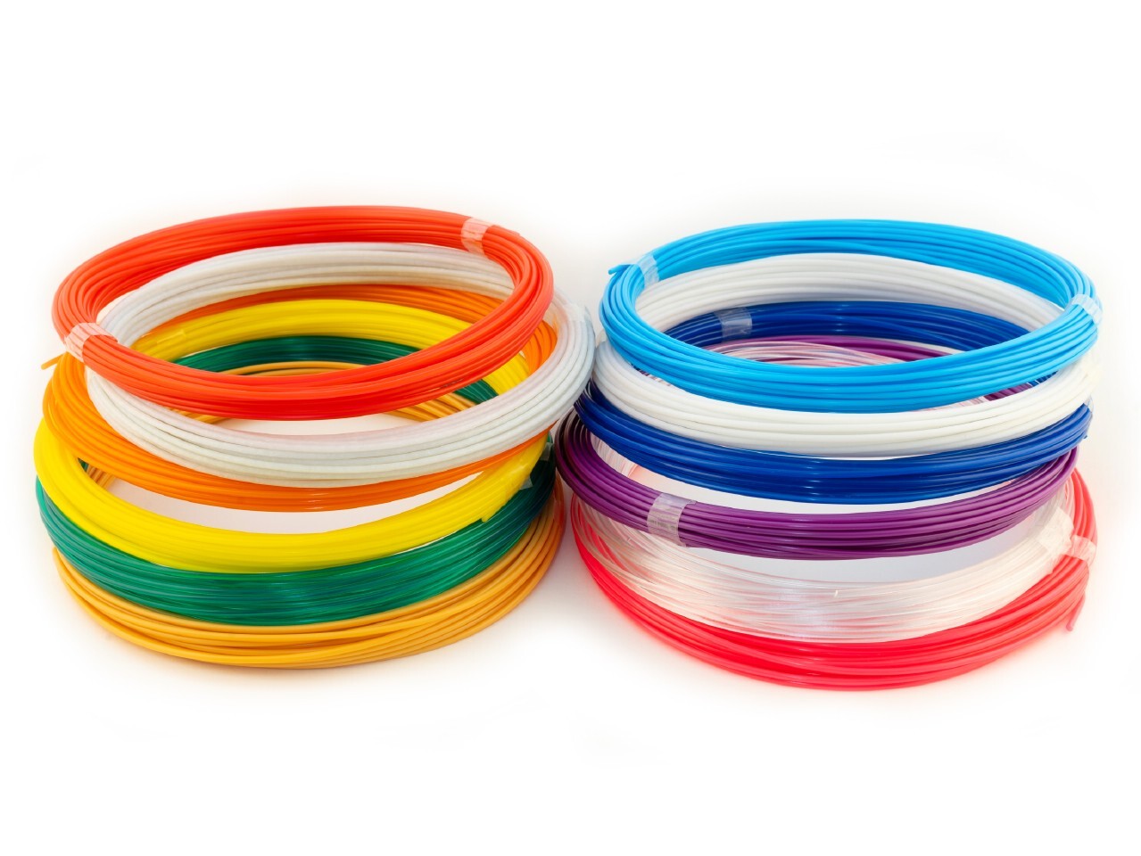 Набор пластика PLA 3DPEN-2 для 3D ручки 10 мотков по 10 метров и 2 мотка светящегося пластика