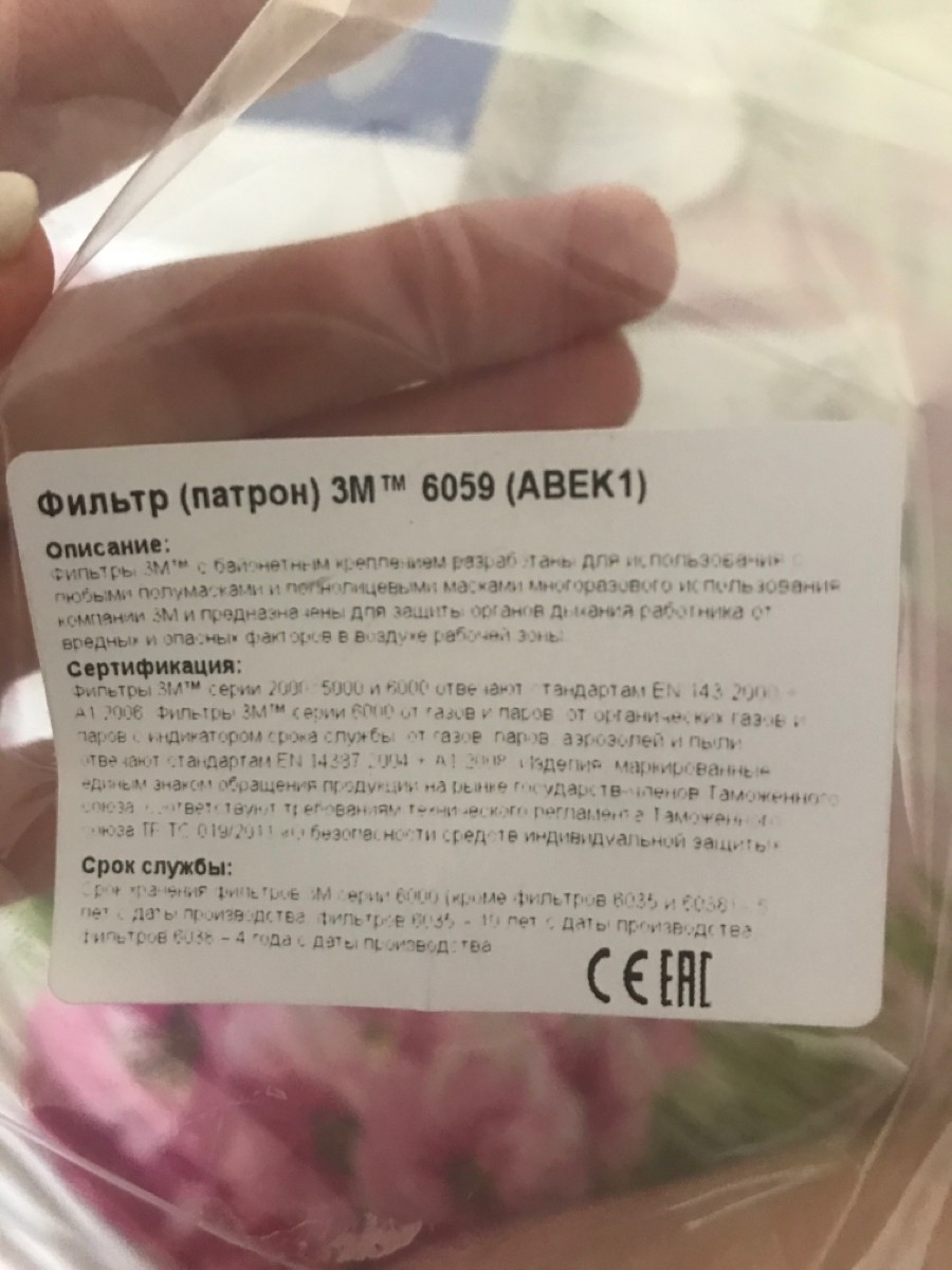 Фильтр для респиратора/маски 3M 6059 (AВЕК1), 2 шт.