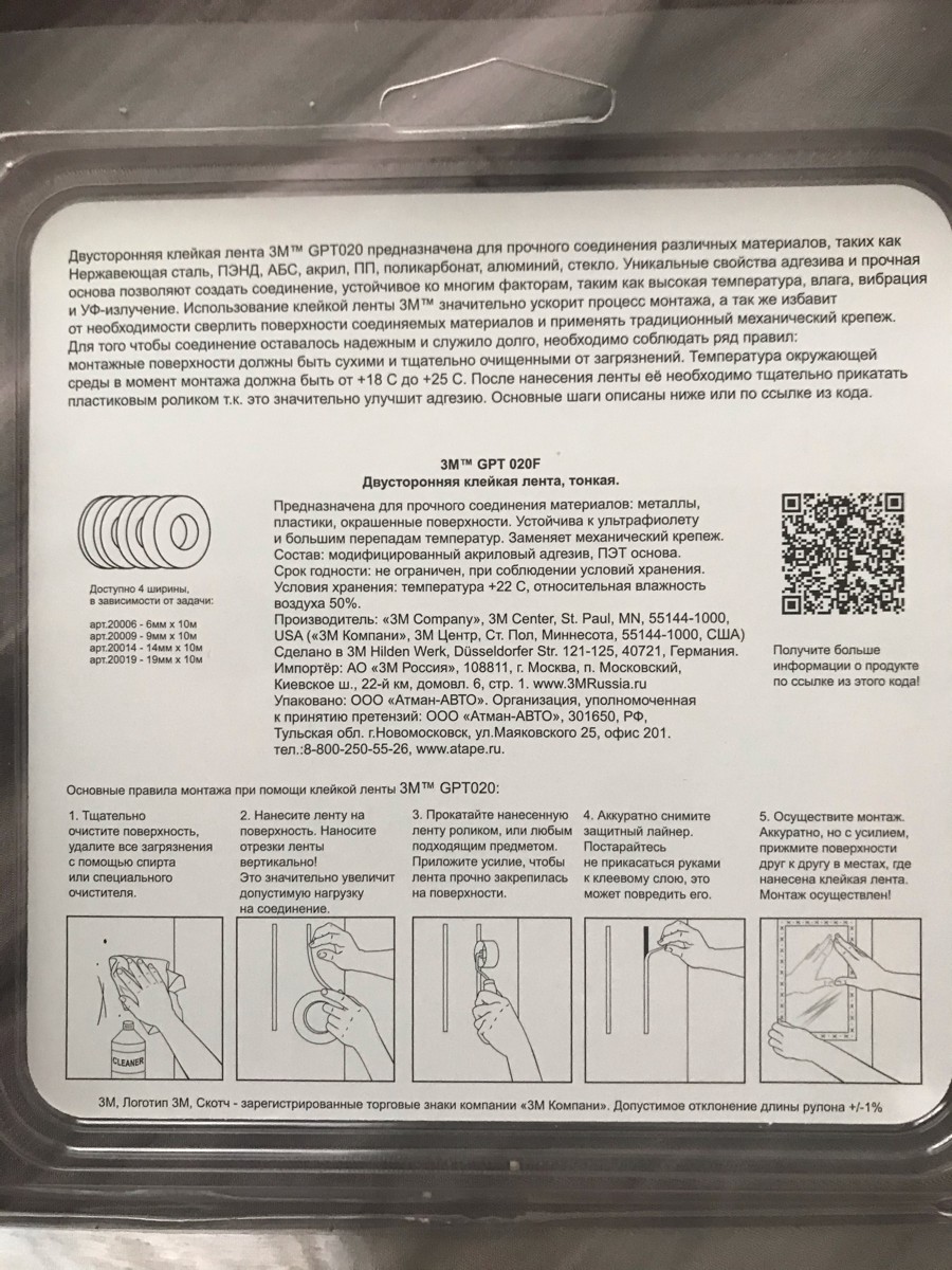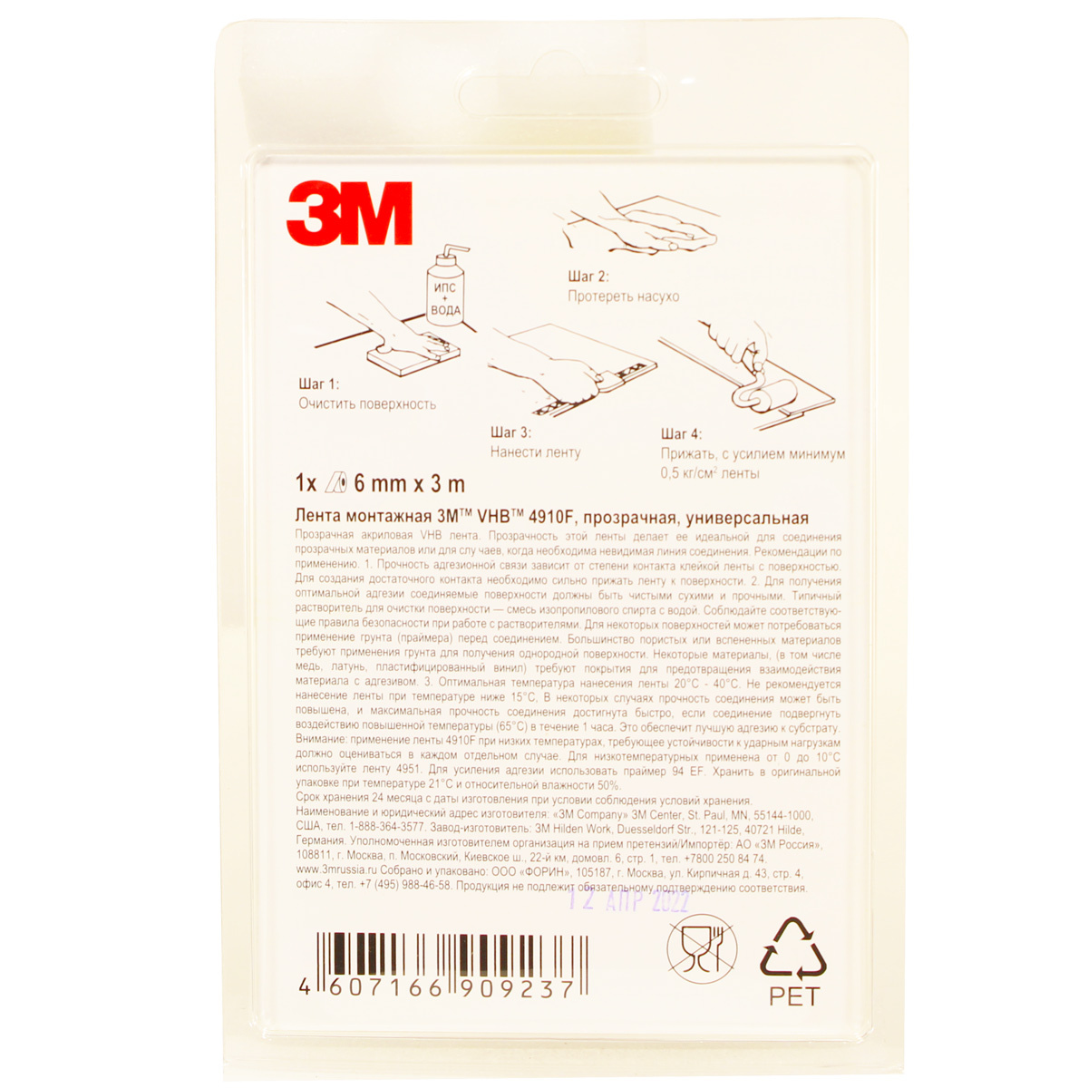 Монтажная двусторонняя универсальная клейкая лента 3М VHB 4910F, прозрачная, 6ММ x 3М
