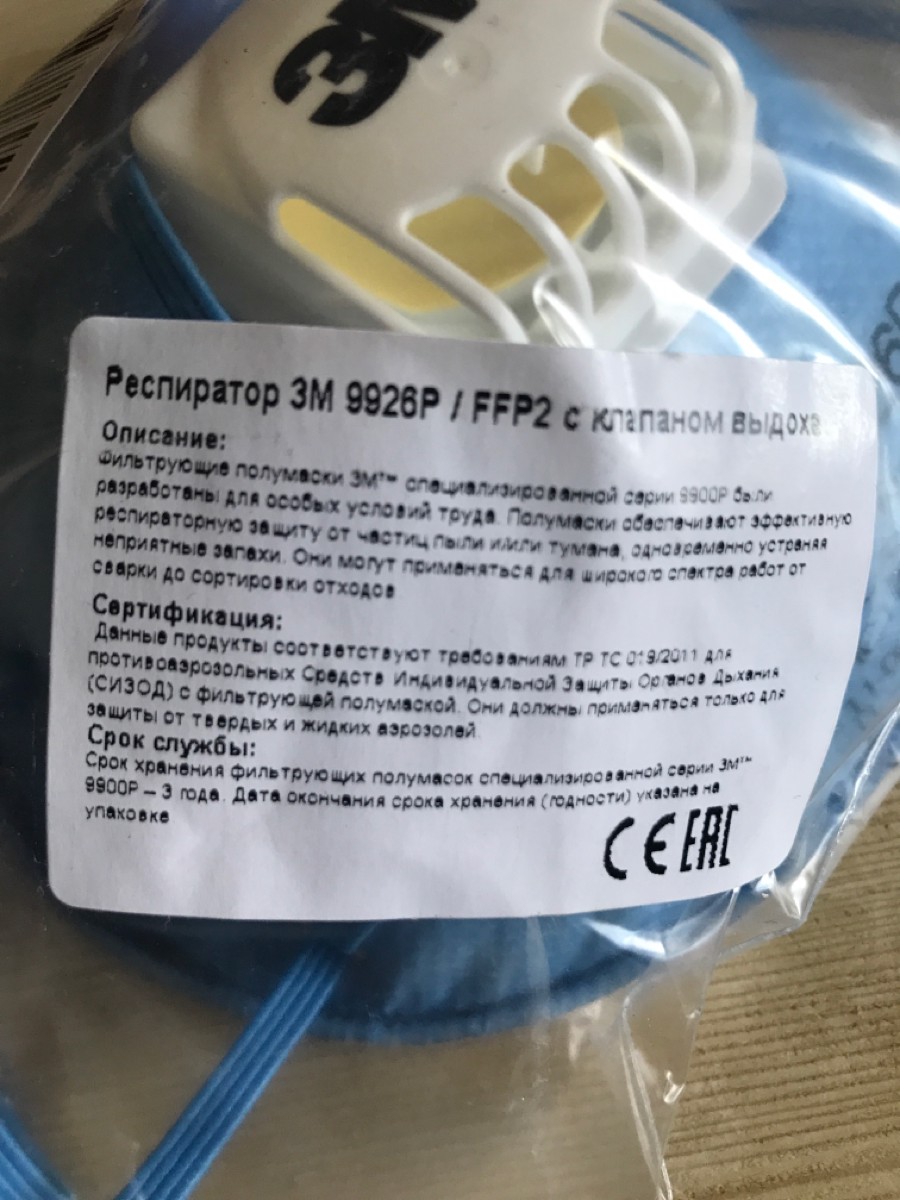 Респиратор профессиональный 3M 9926Р, FFP2, 1 шт.