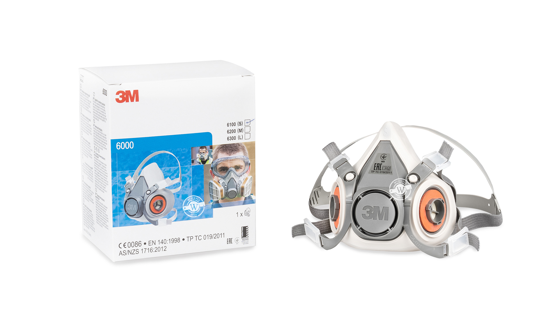 Комплект для защиты от пыли 3M 6100 ( Полумаска/респиратор 3M 6100 и фильтр 6035 ) / размер S
