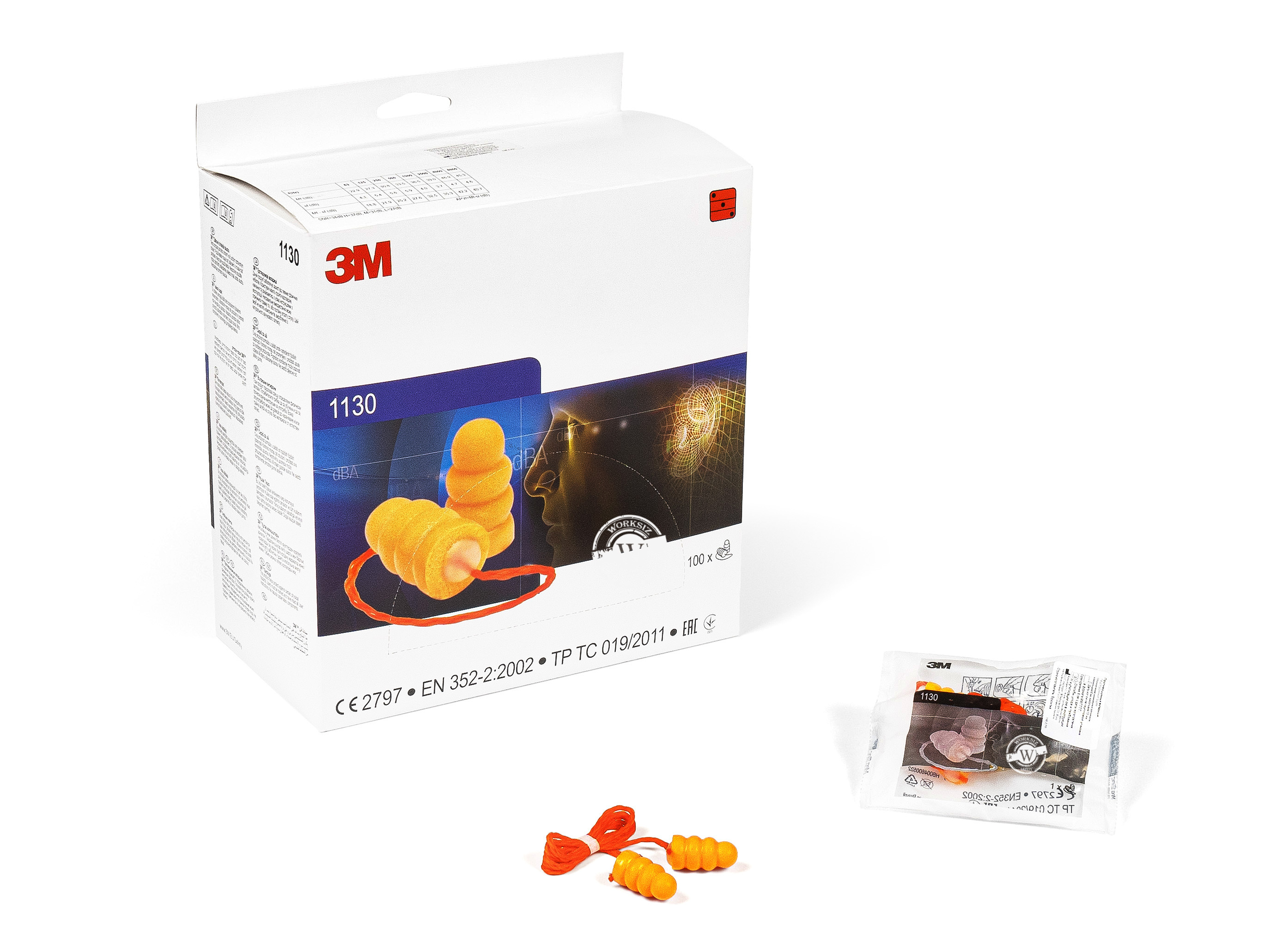 Противошумные вкладыши ( беруши ) 3М 1130 со шнурком ( SNR - 34 дБ ), 100 пар