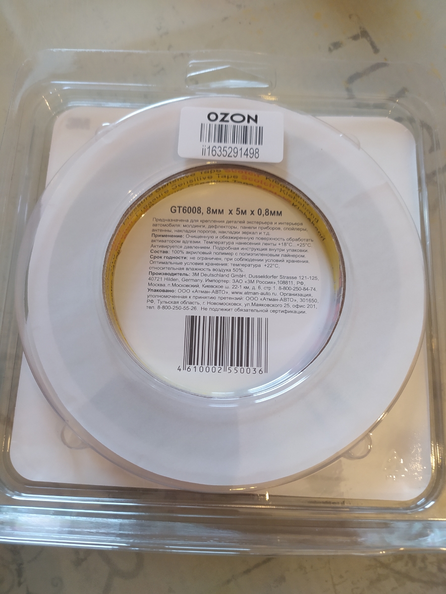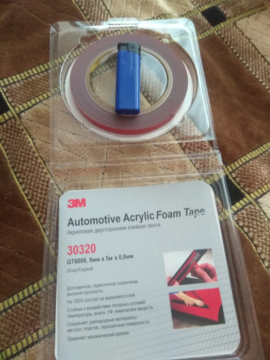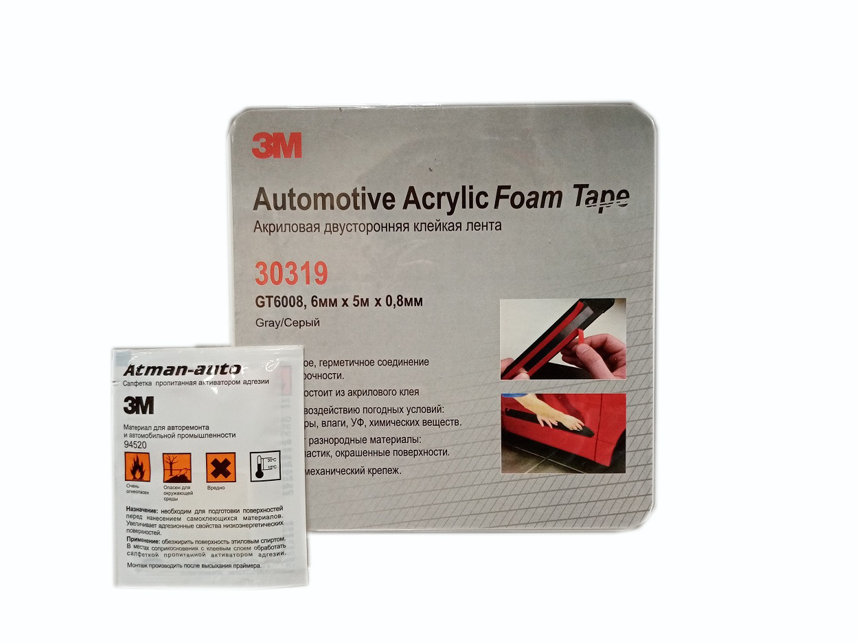Акрил. двусторонняя клейкая лента, 3М GT6008 6мм х 5м, комплект с салфеткой (активатор адгезии)