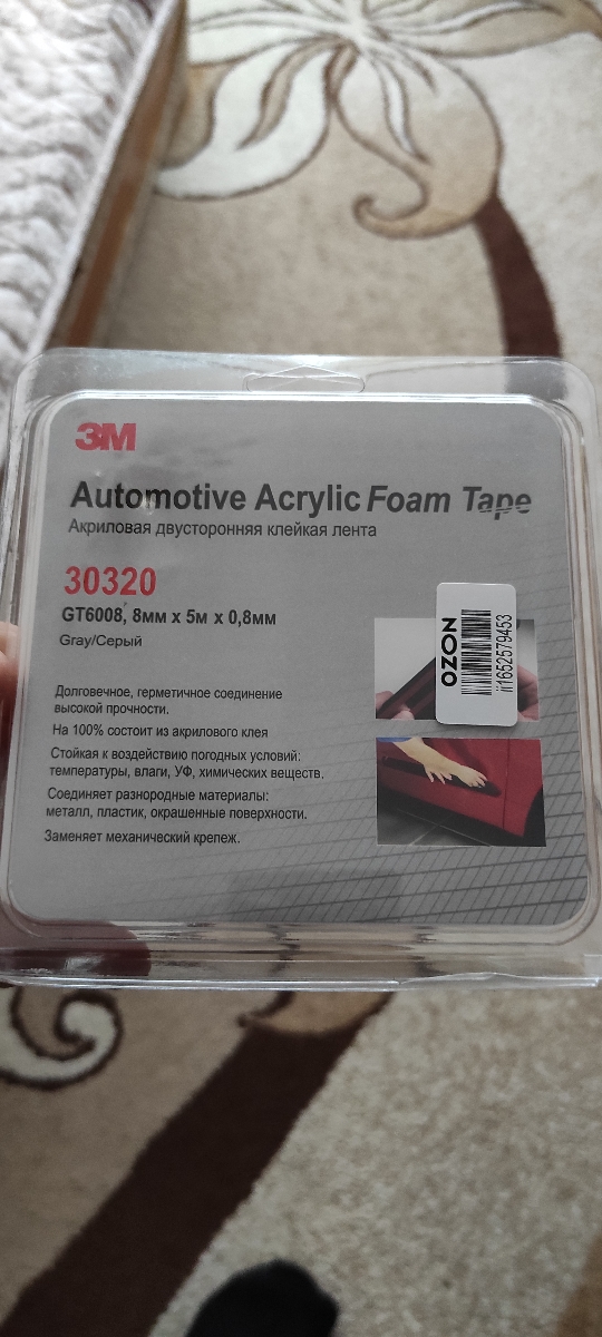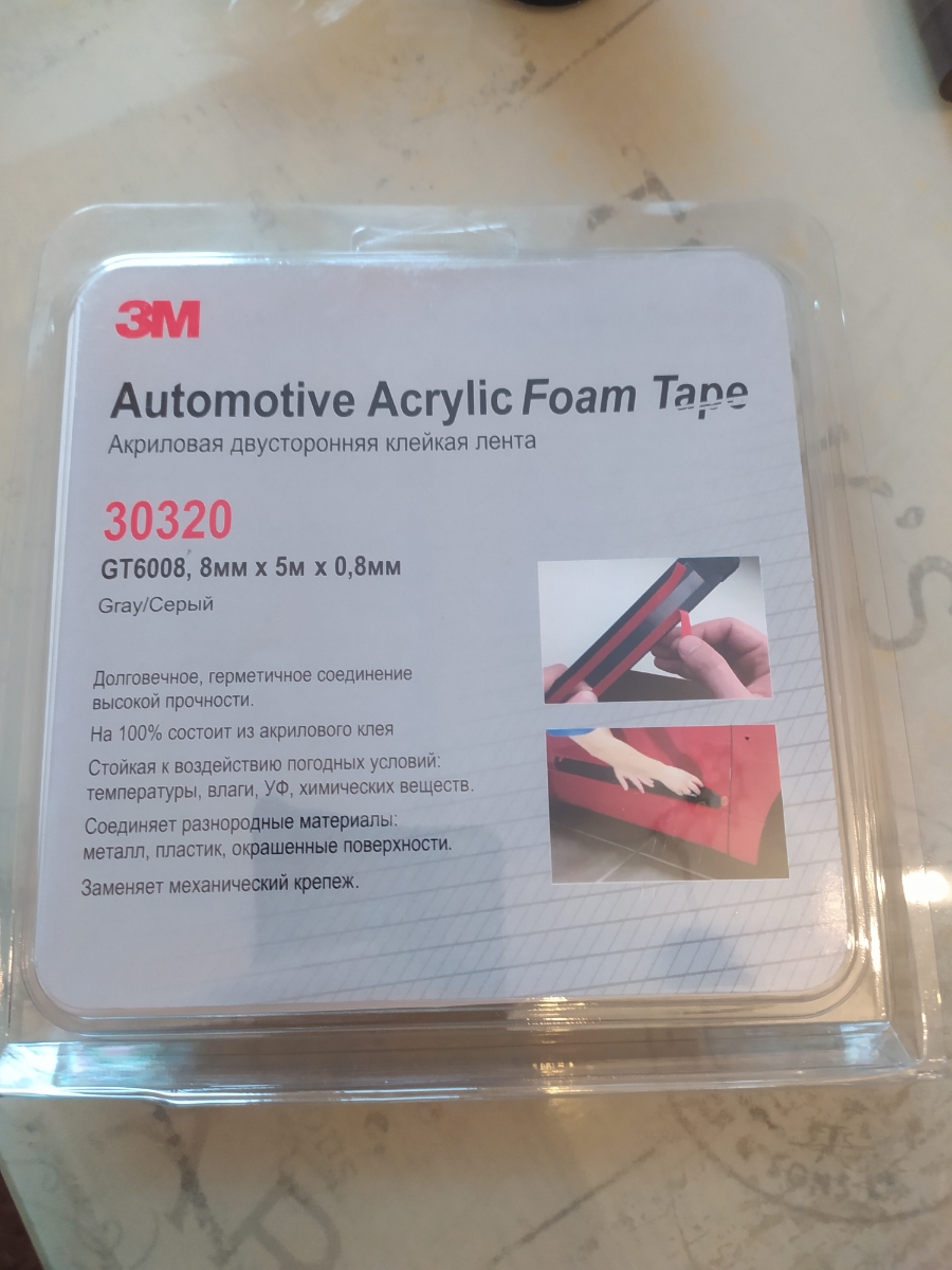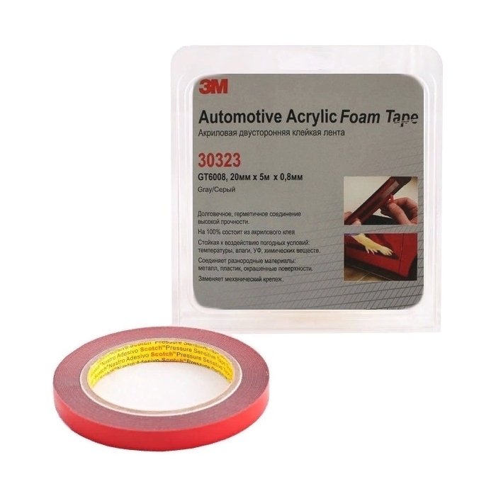 Клейкая лента 3M "Automotive Acrylic Foam Tape", двусторонняя, толщина 0.8мм 20 мм 5 м, 1 шт