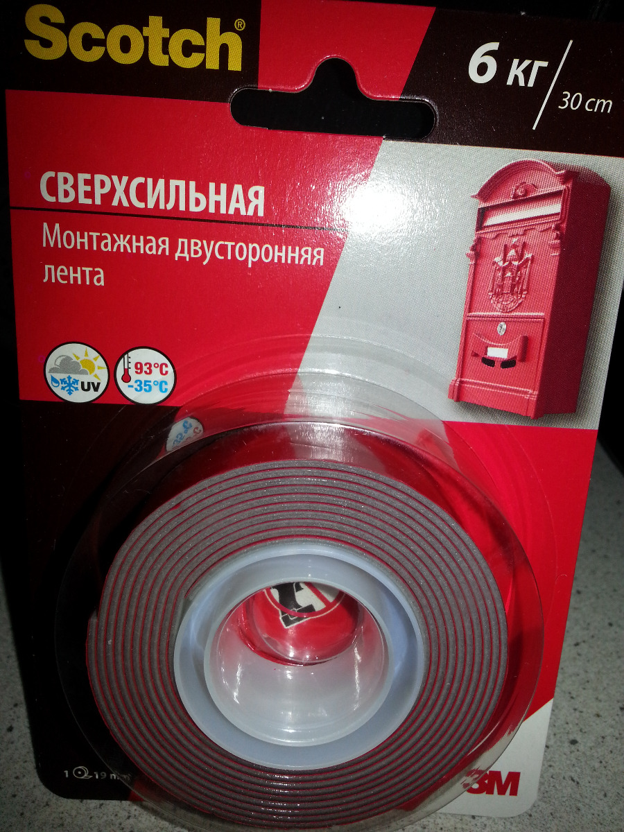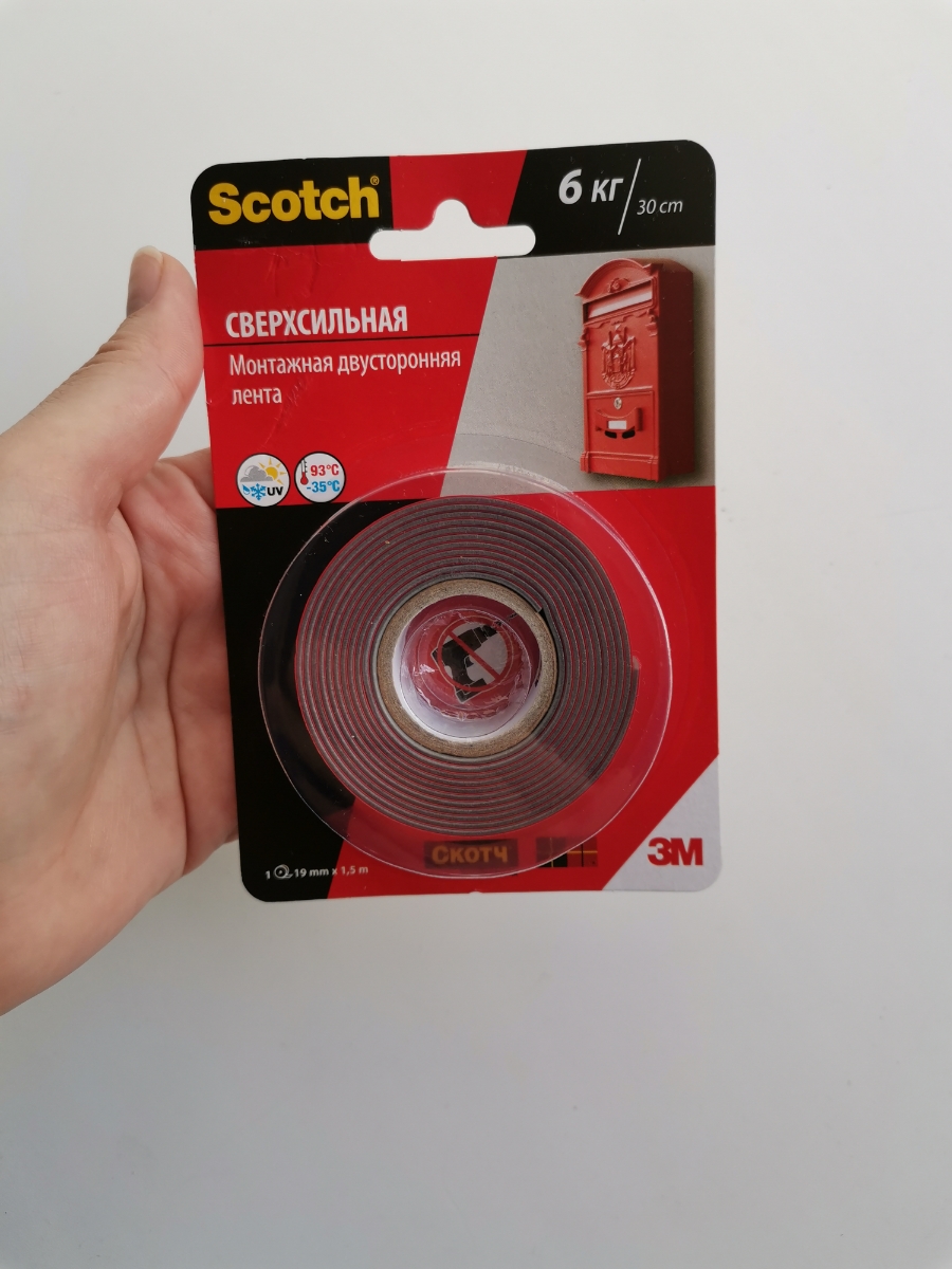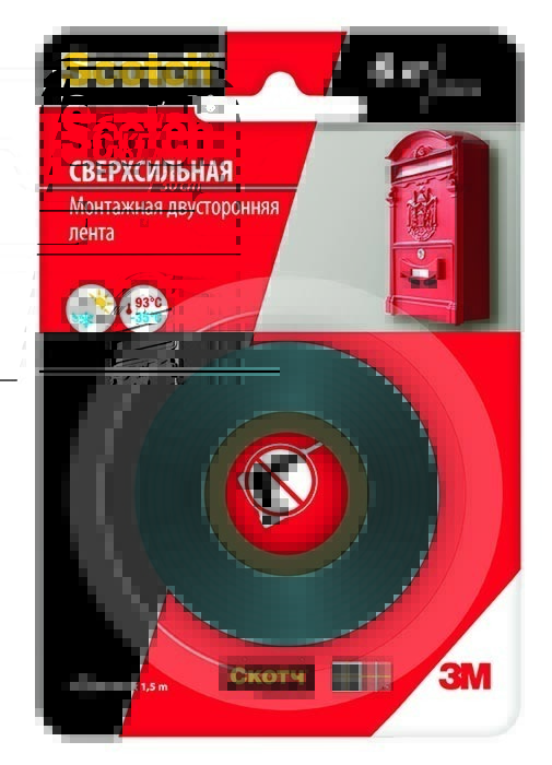 Монтажная лента 3M Сверхпрочная двусторонняя 19 мм x 1.5 м, 1 шт