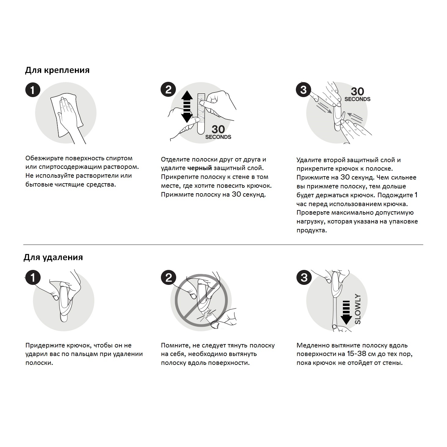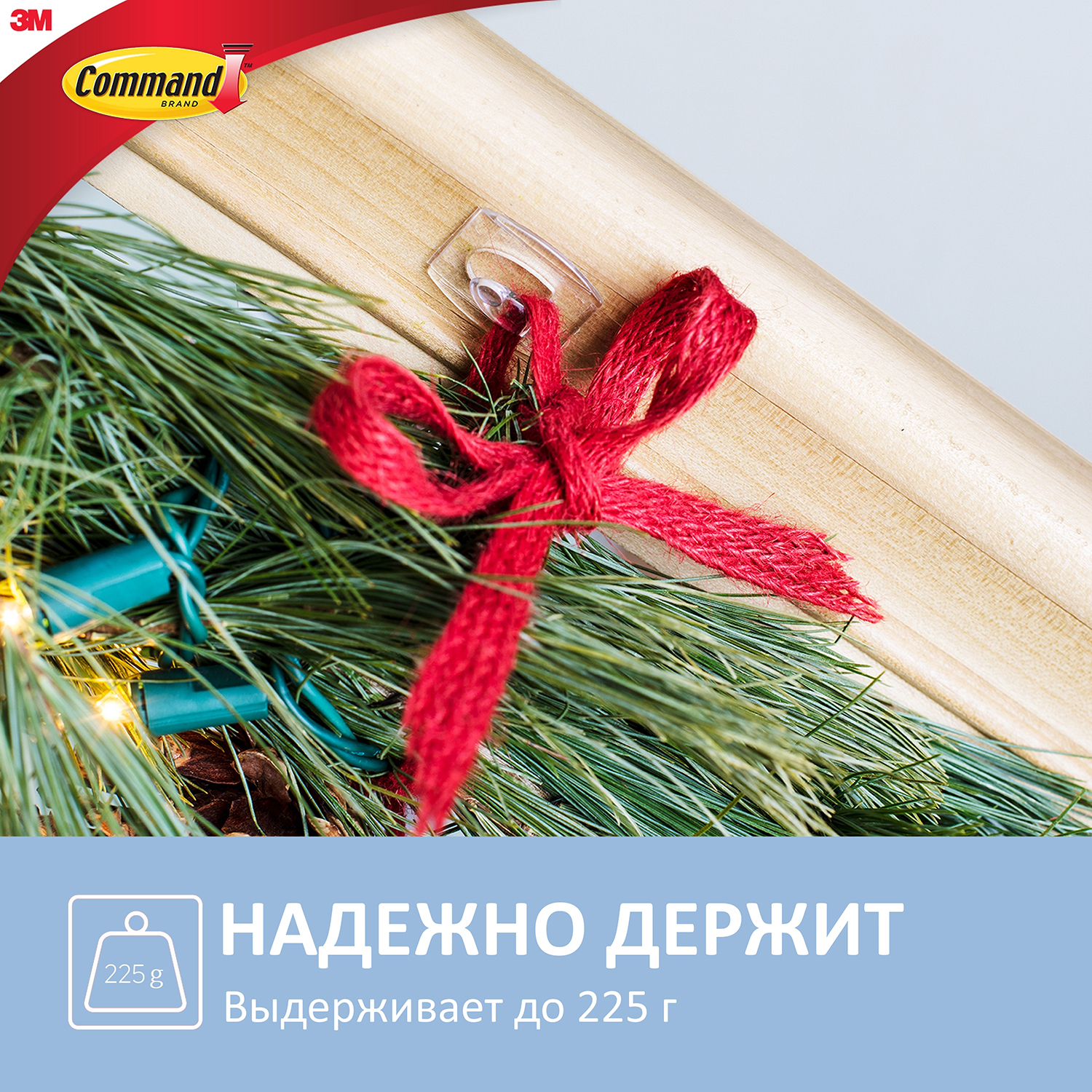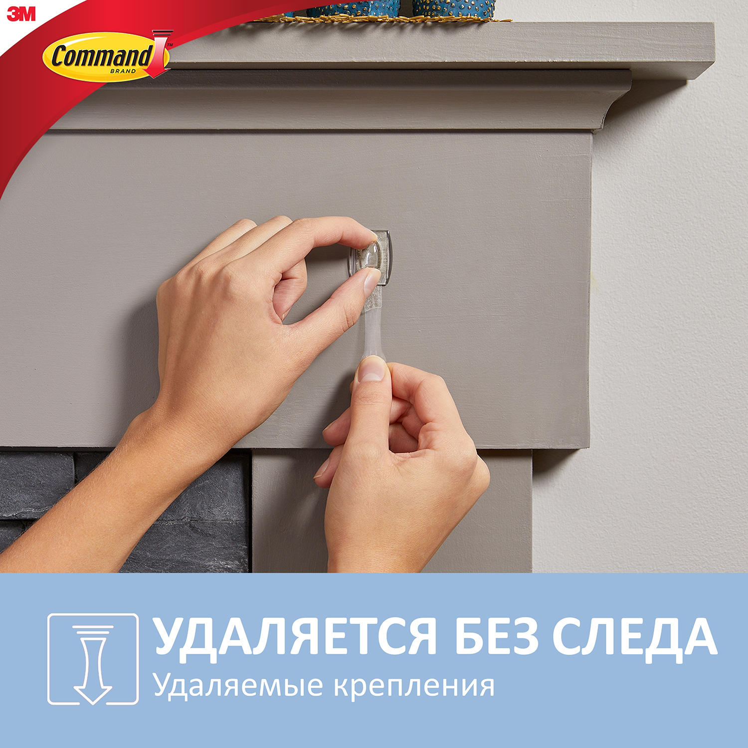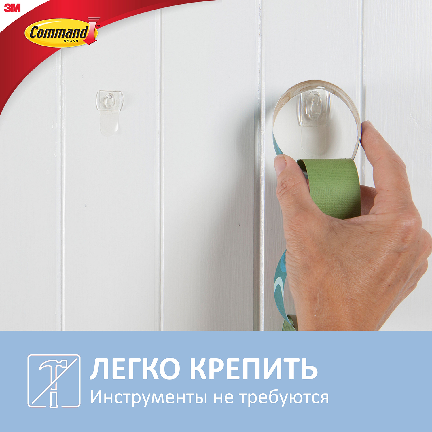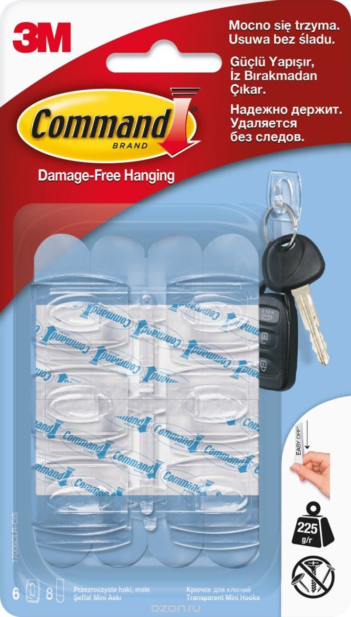 Крючок для ключей Command прозрачный с клейкими удаляемыми полосками 6 штук