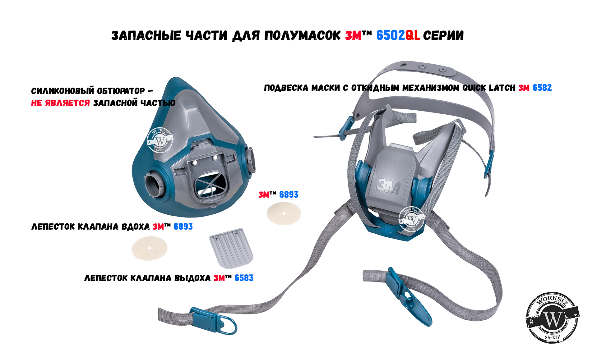 Респиратор профессиональный 3M ( Полумаска ) 6501QL , размер S, 1 шт.