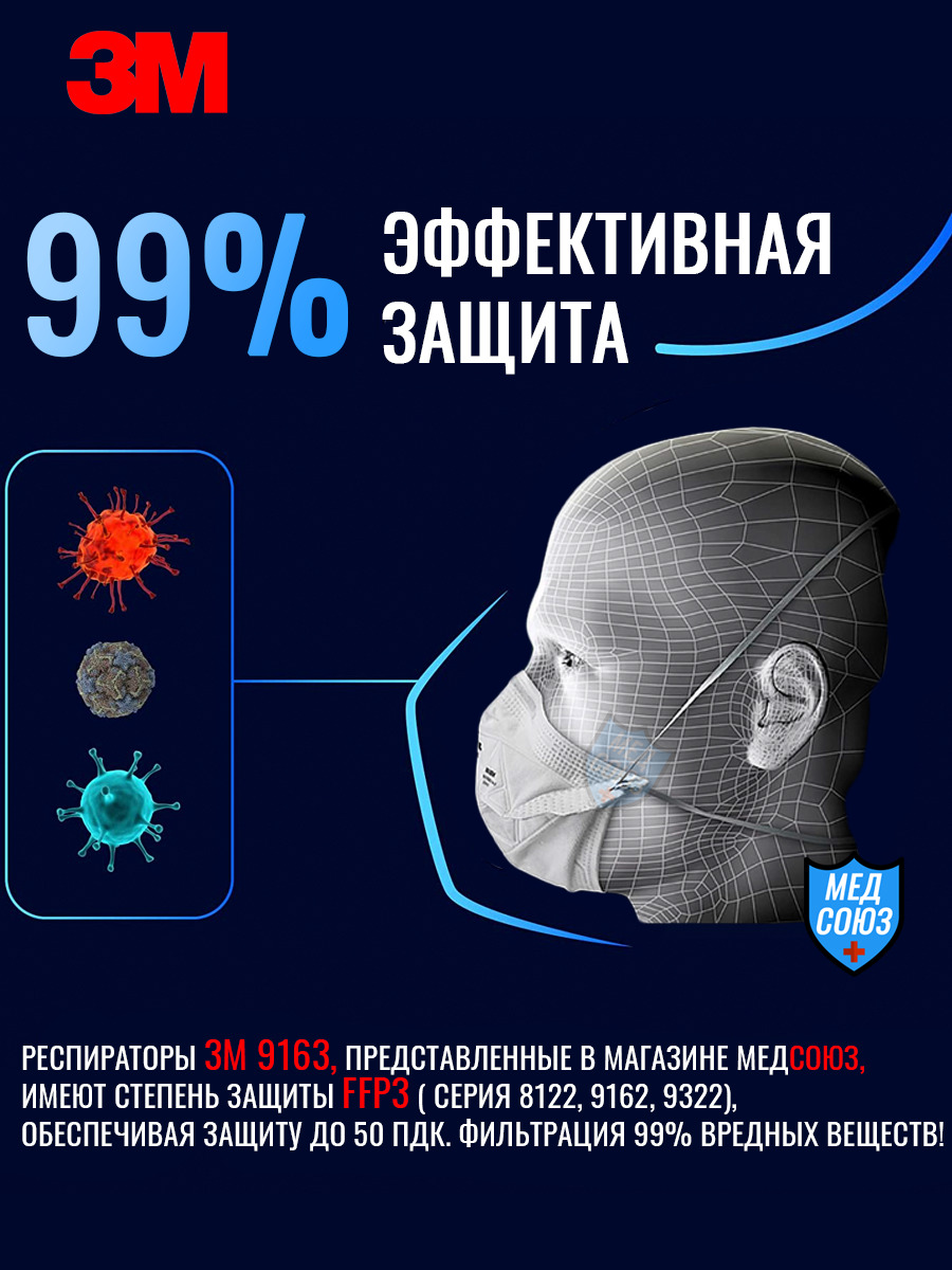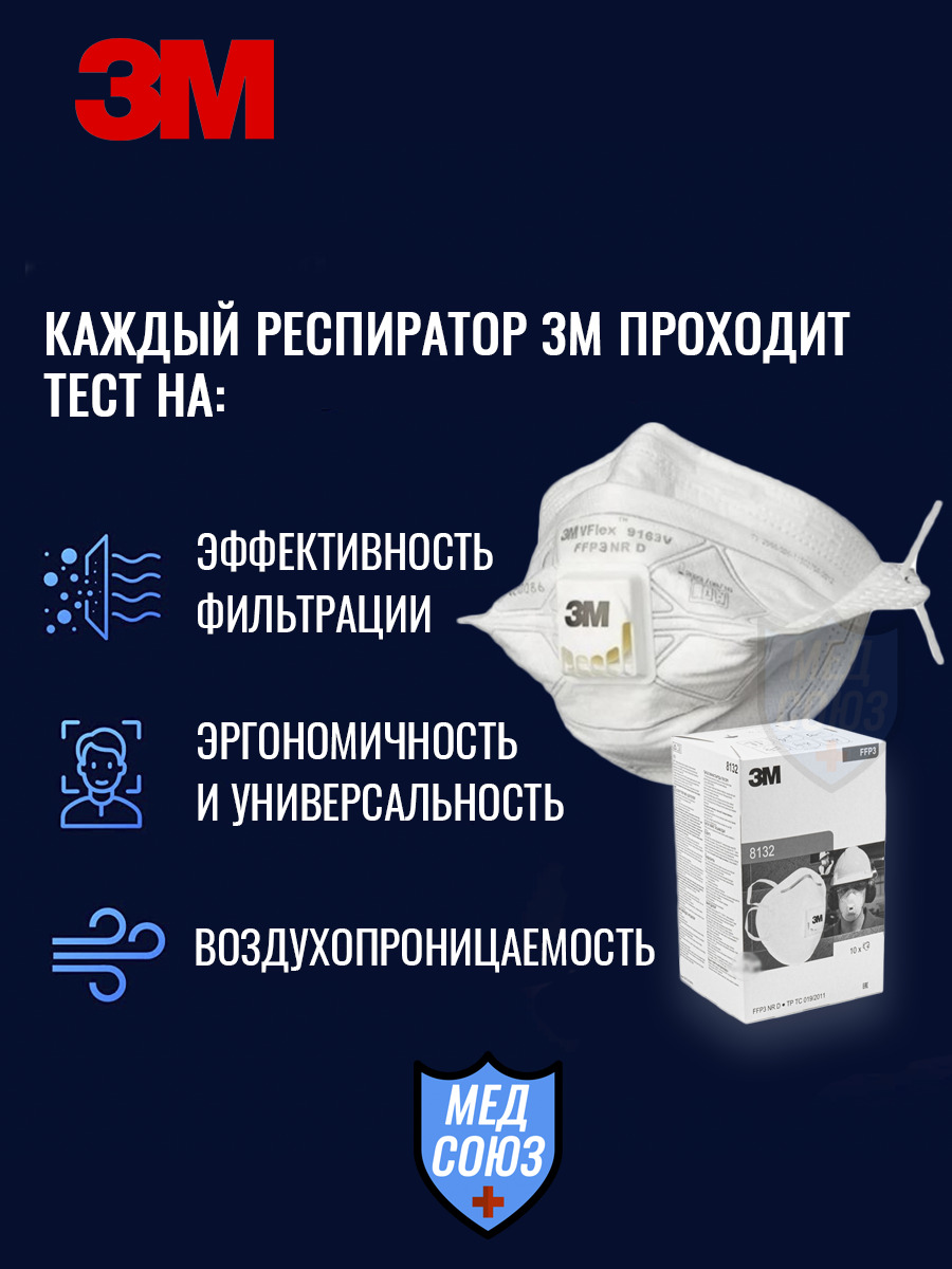 Респиратор универсальный 3M Респиратор 9162V 3М FFP2 до 12 ПДК, FFP2, размер Универсальный, 1 шт.