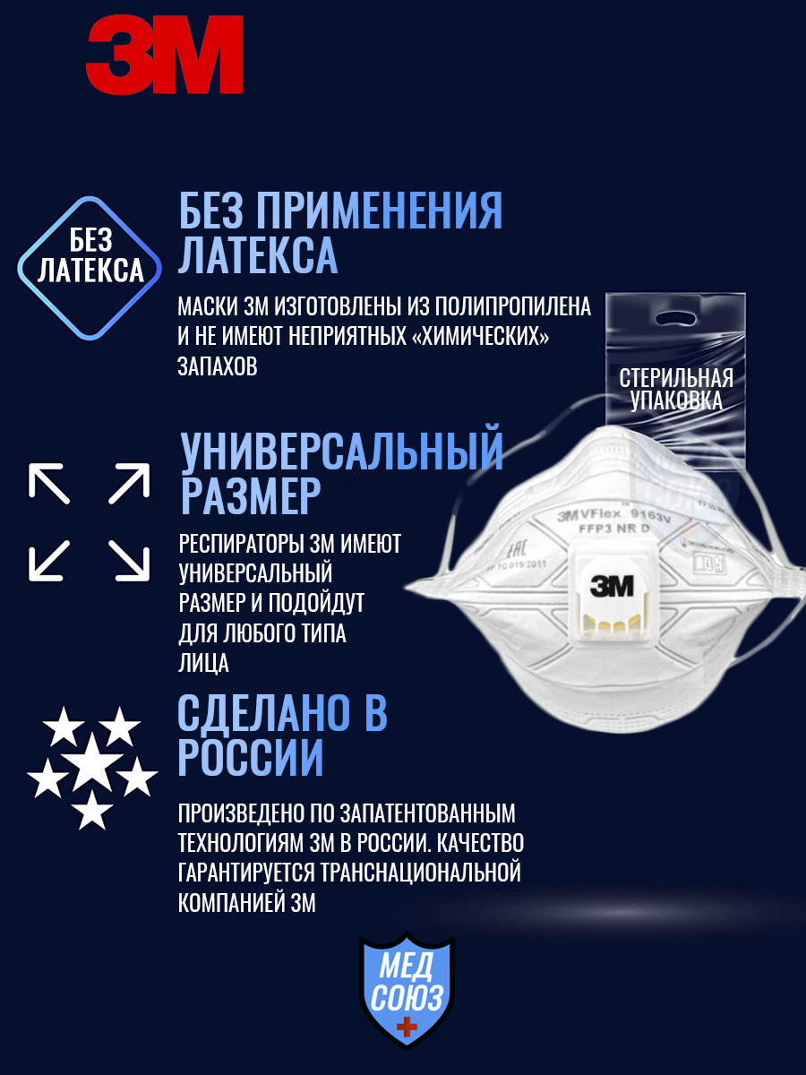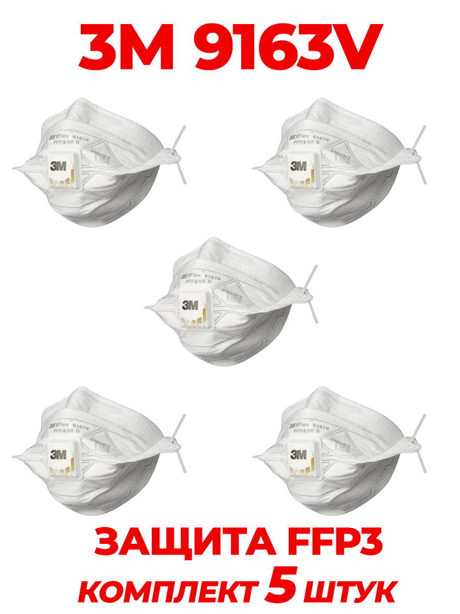 Респиратор универсальный 3M, FFP3, размер Универсальный, 5 шт.