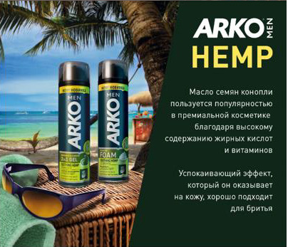 Arko Men гель для бритья и умывания 2в1 Soothing Hemp с маслом семян конопли 200 мл