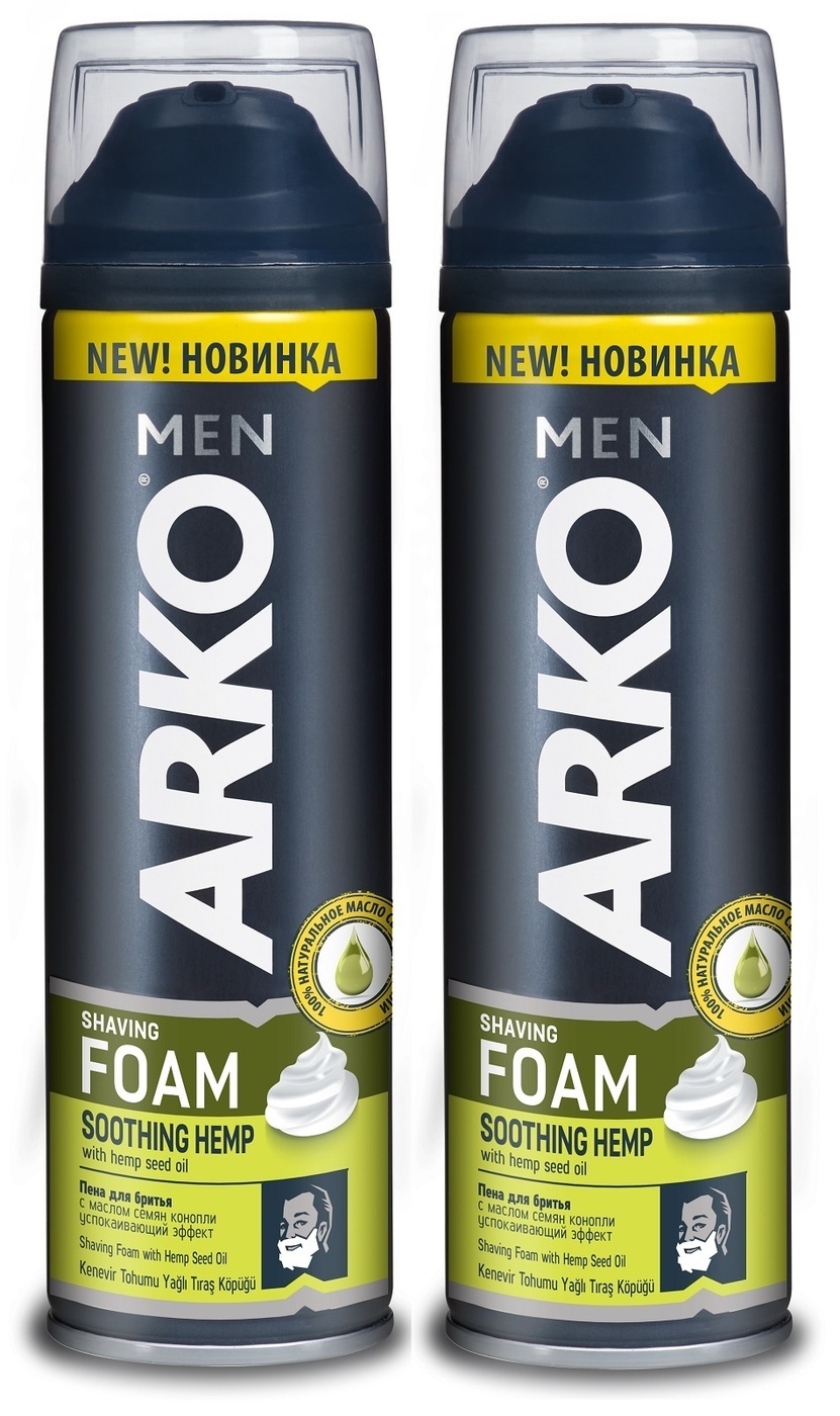 Arko Men Пена для бритья Hemp с маслом семян конопли с успокаивающим эффектом, 2 шт. по 200 мл