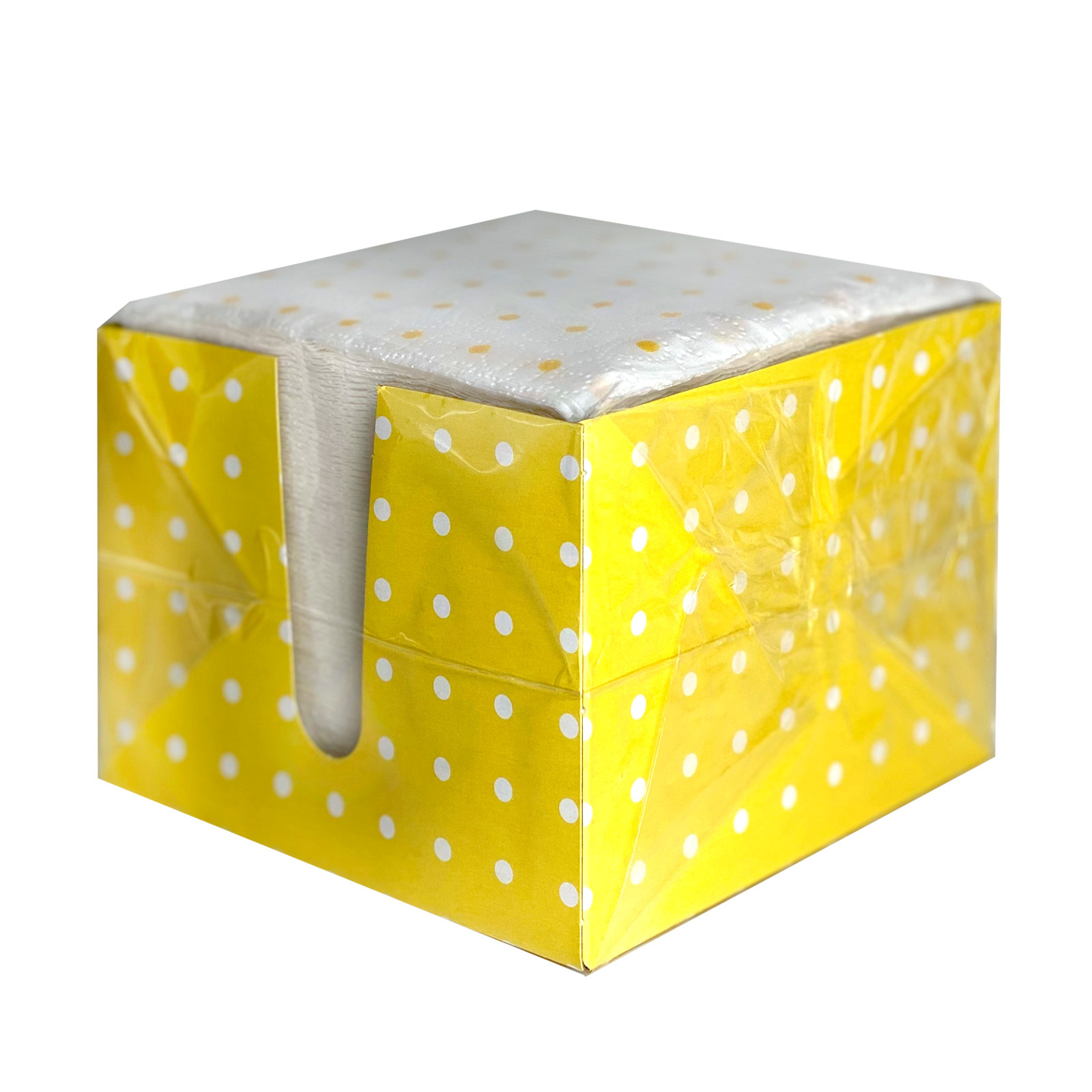 Перышко салфетки 2-х слойные желтые в горох в коробке, 85шт
