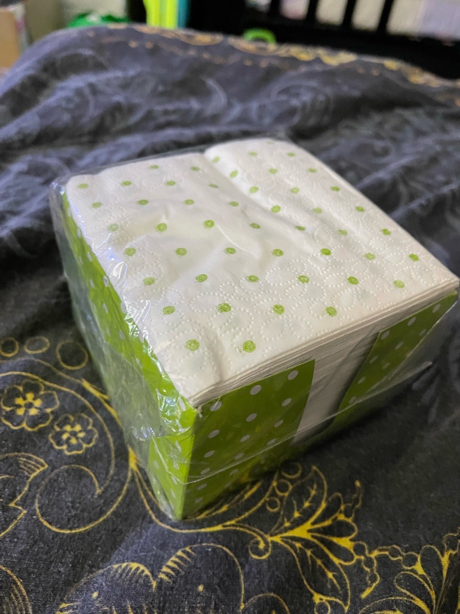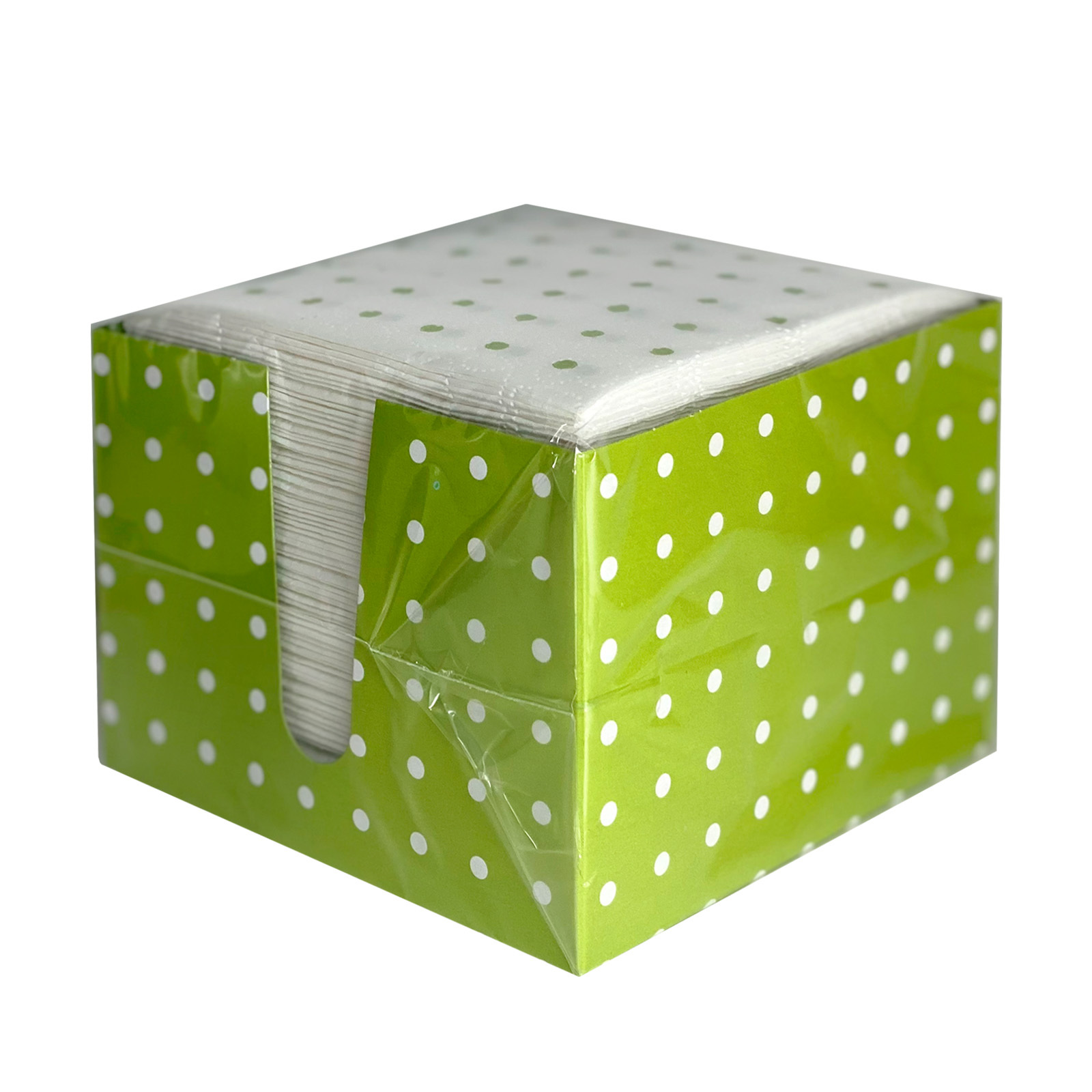 Перышко салфетки 2-х слойные в коробке зеленые в горох, 85шт