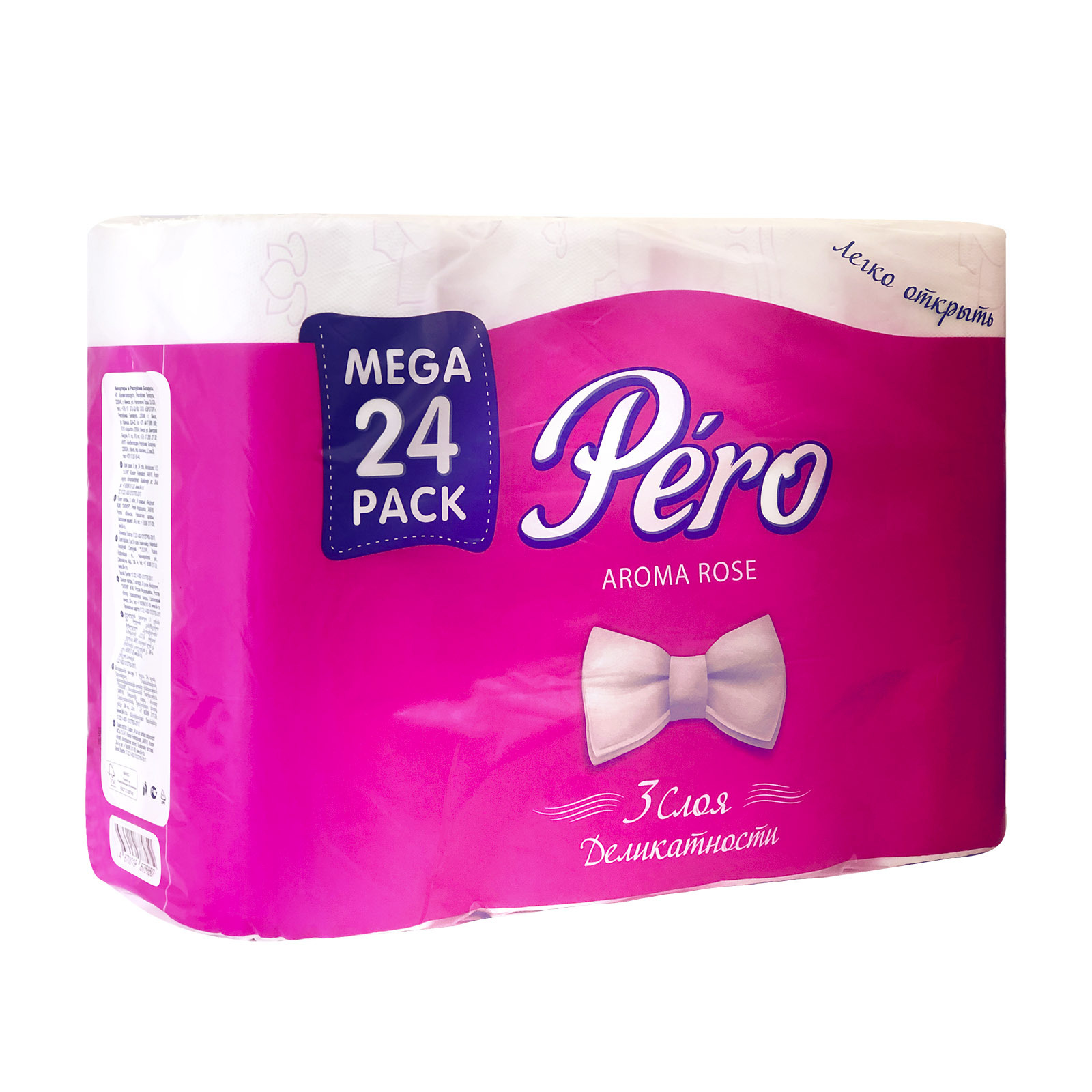 Pero туалетная бумага 3-х слойная, белая с рисунком "ROSE" 3-х, 24 рулона