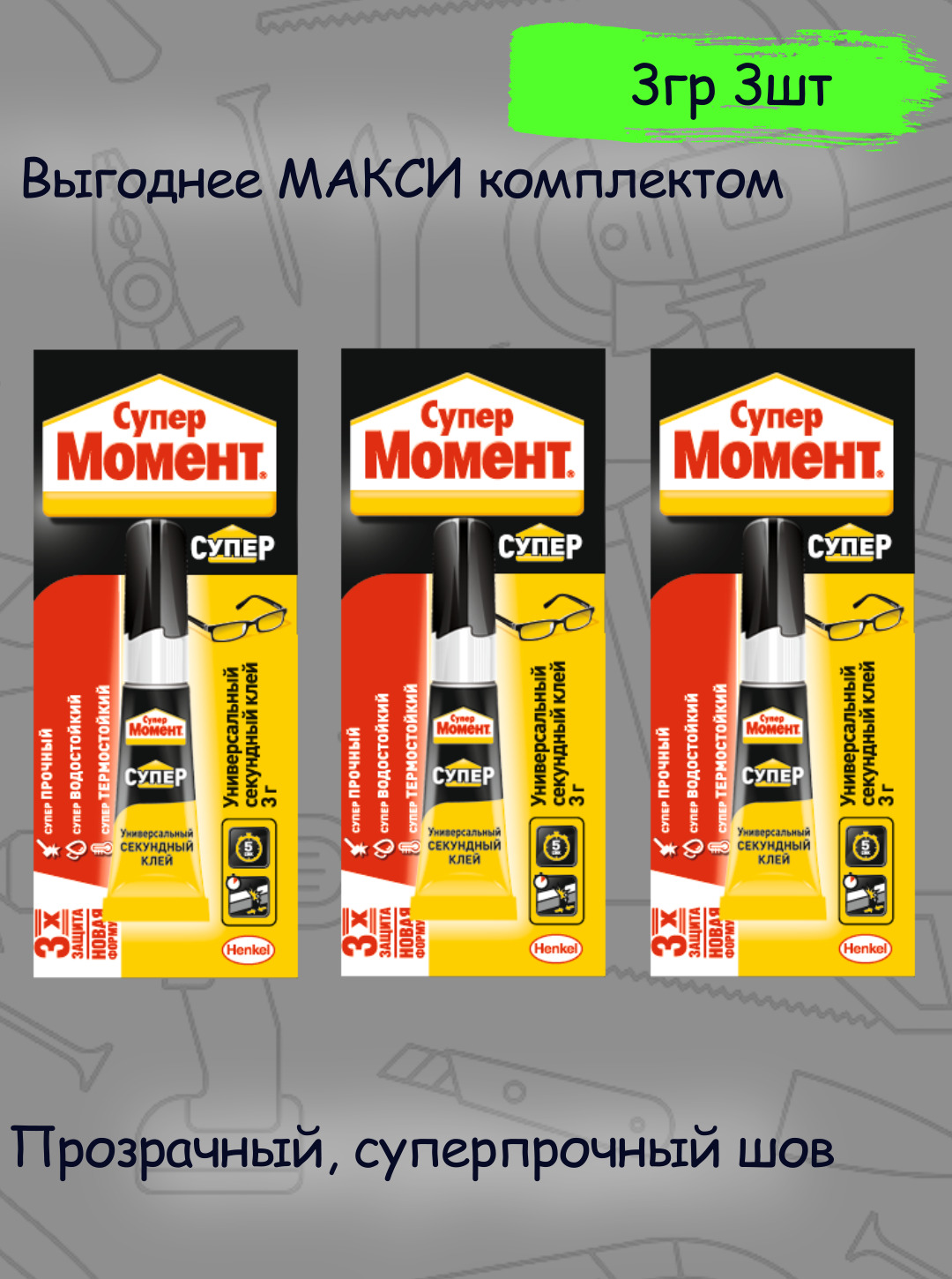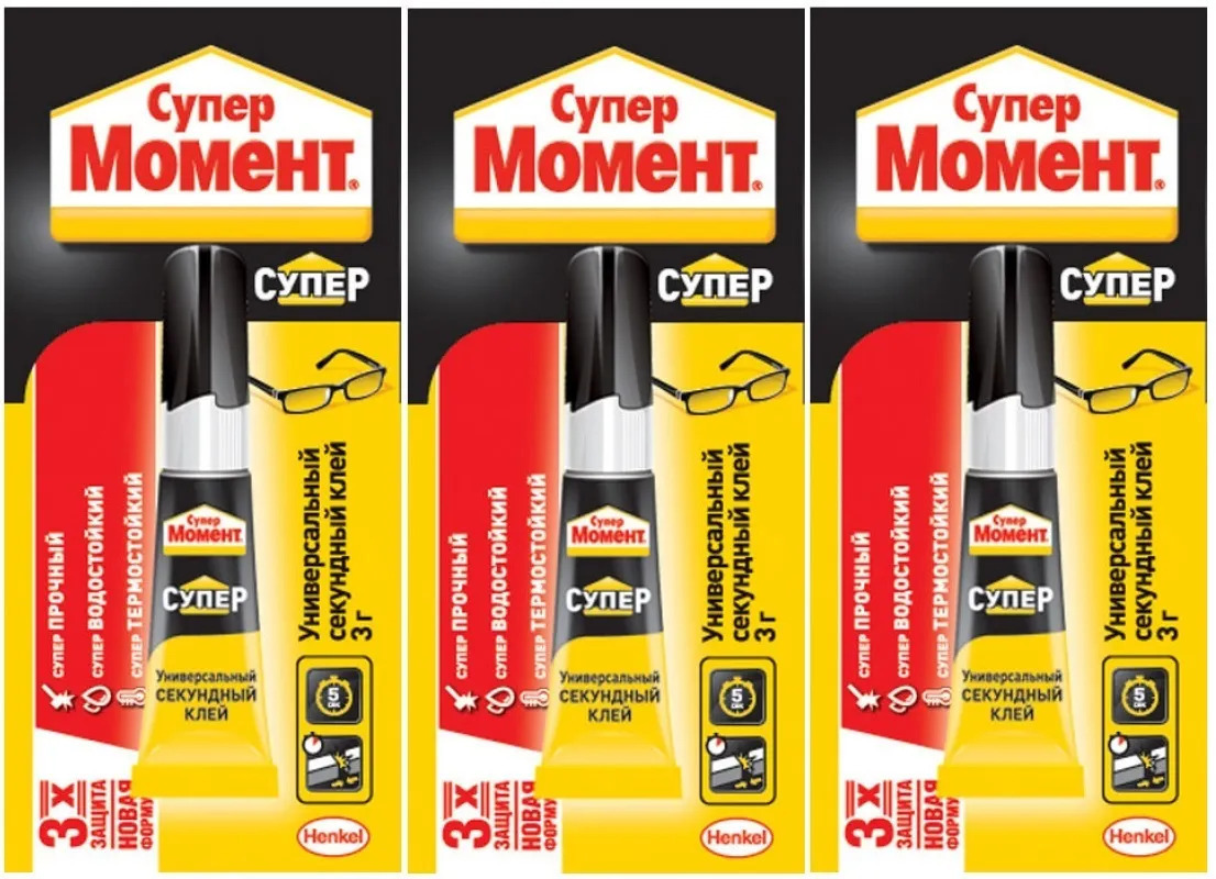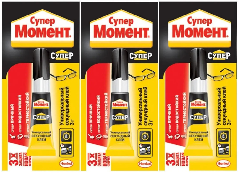 Клей строительный Момент Супер секундный универсальный 0.003 кг, 3 шт.