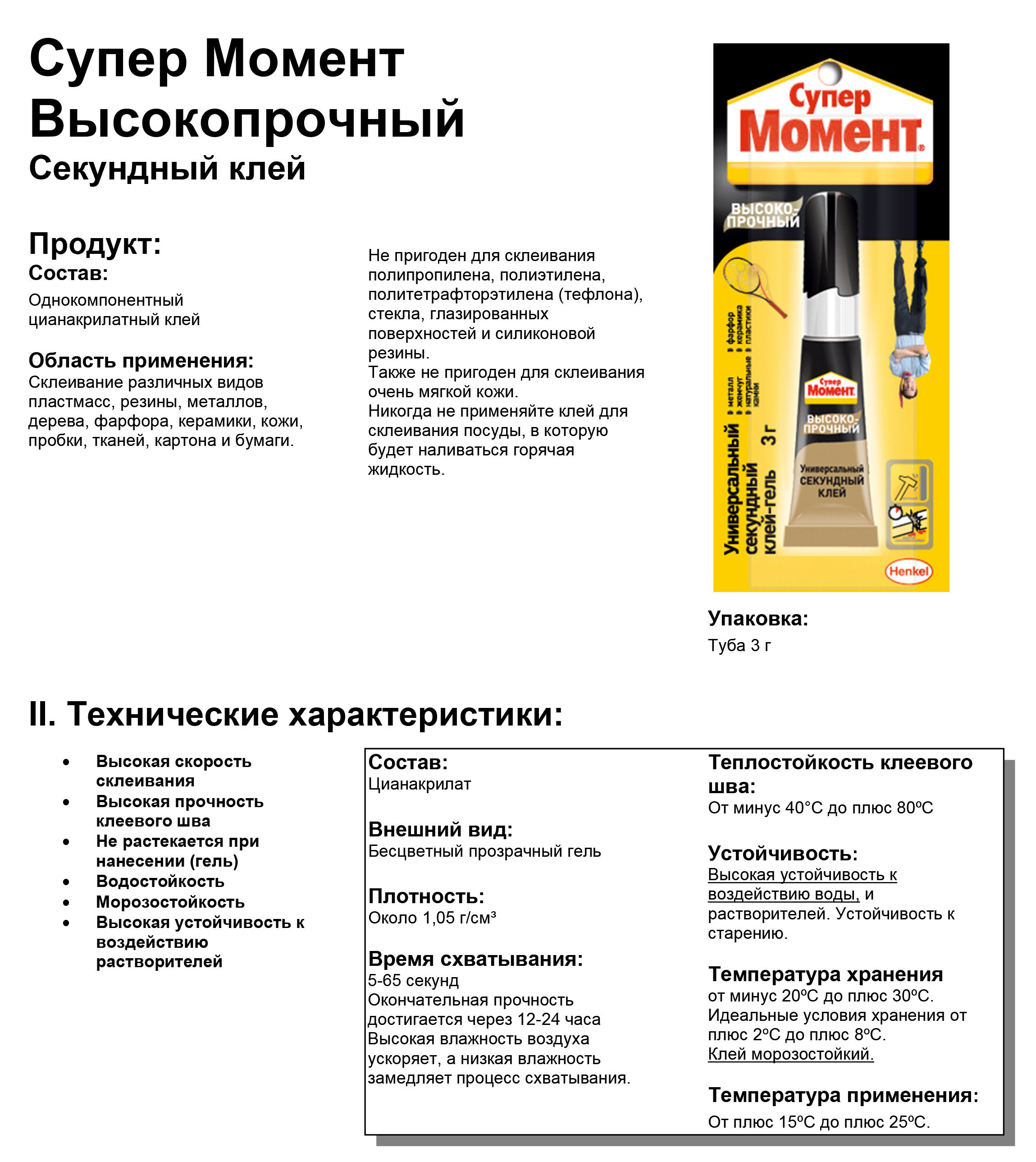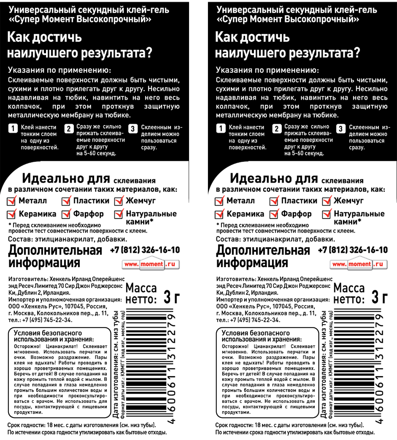 Клей Секундный Супер Момент "Высокопрочный", 2 шт по 3 г