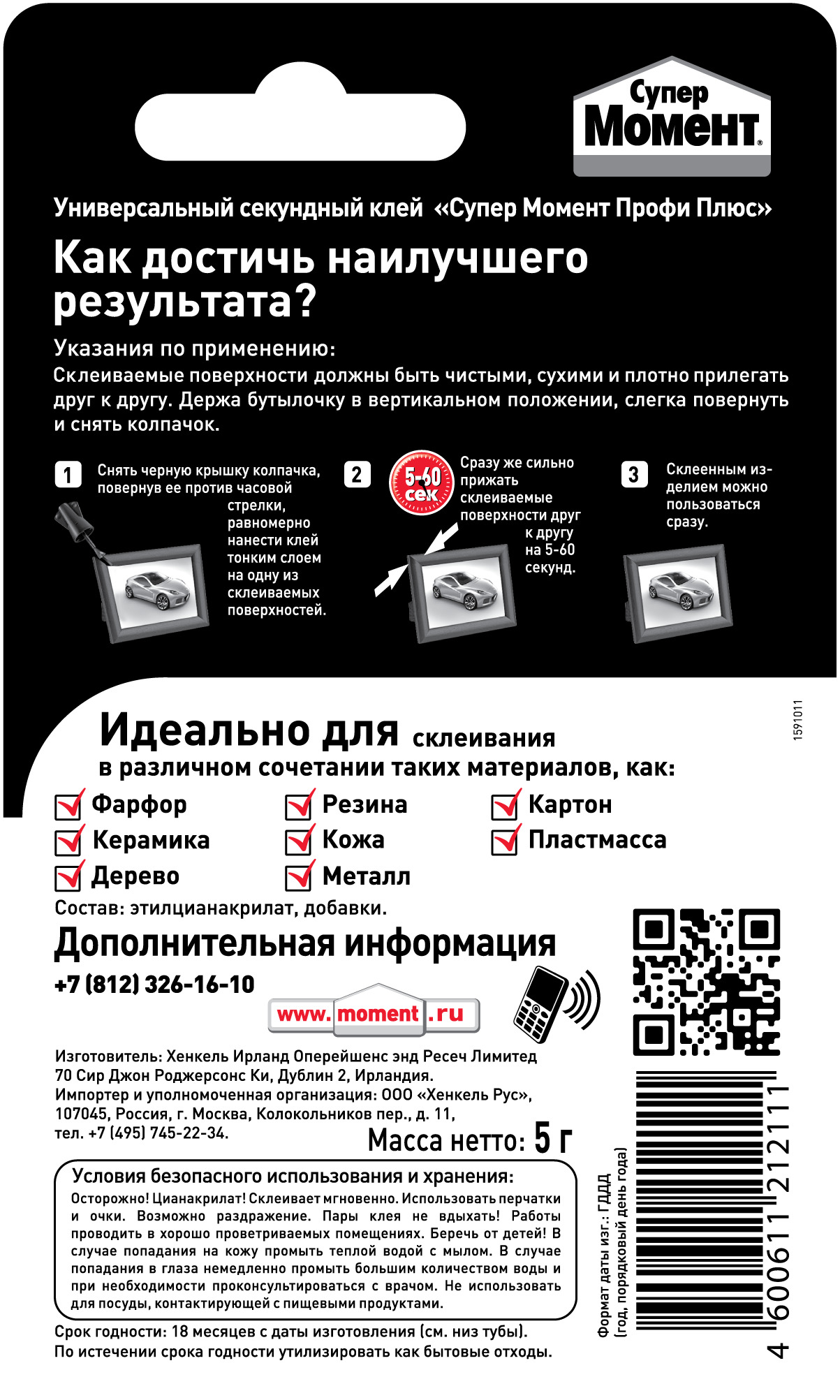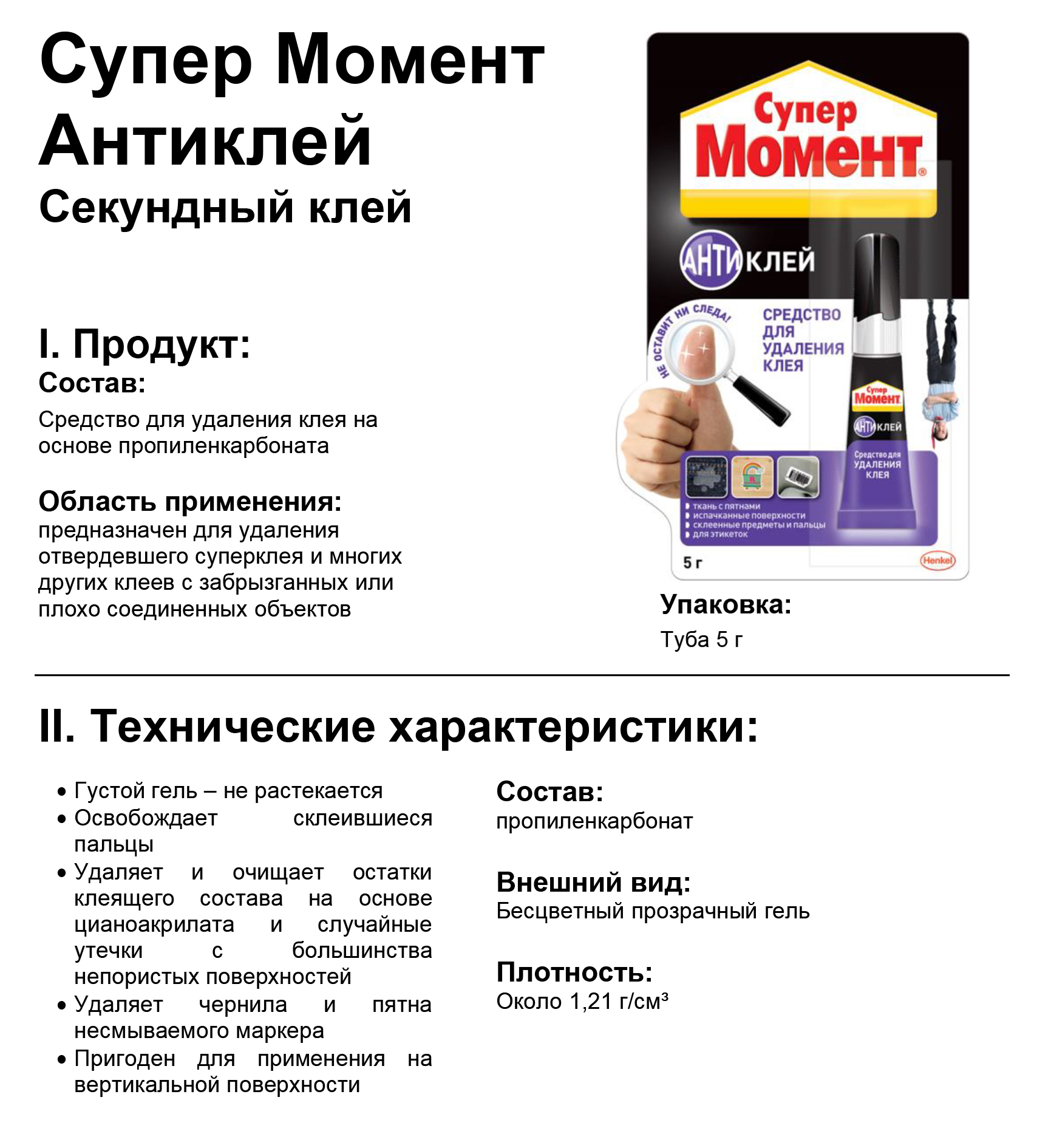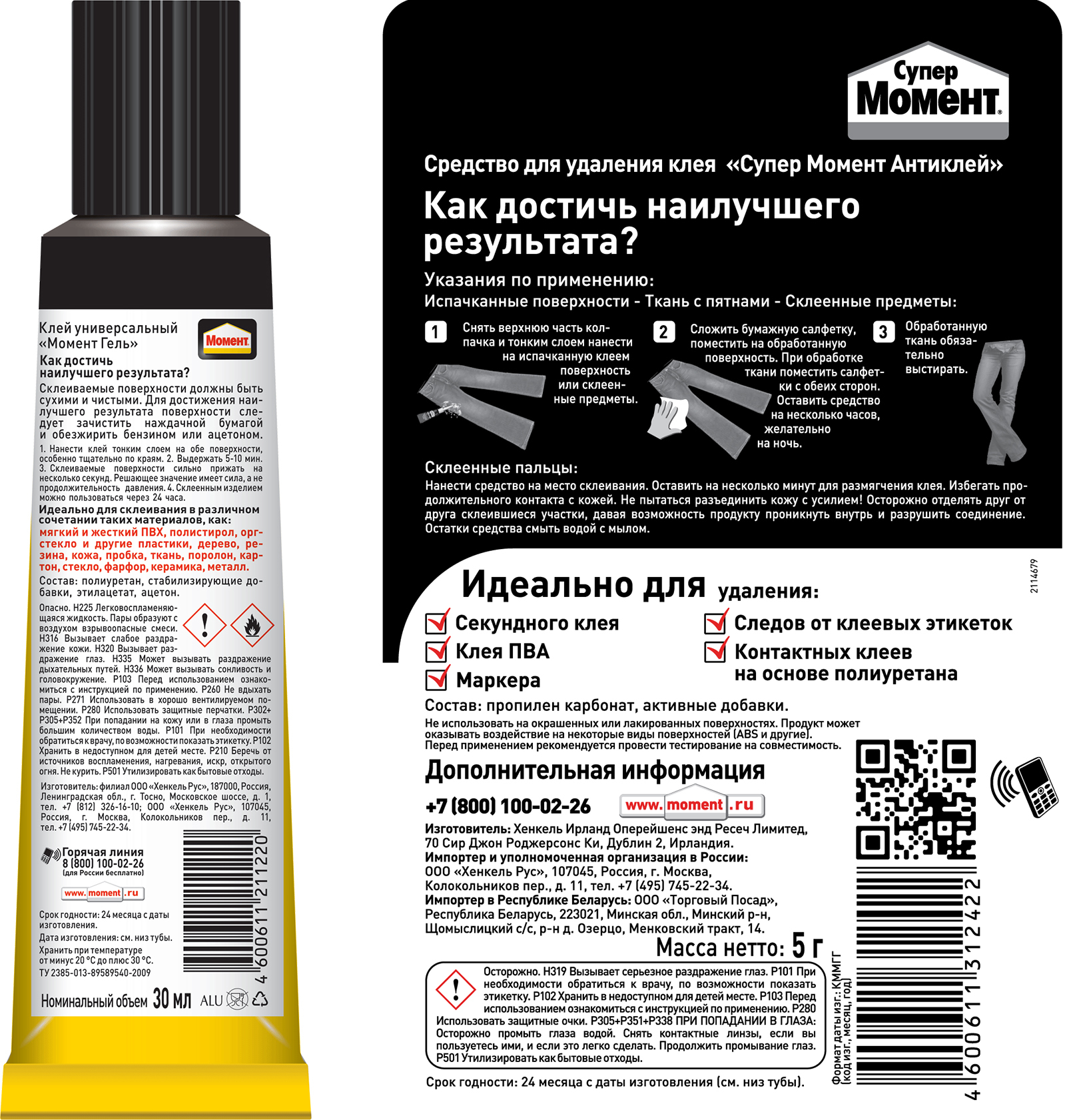 Клей Контактный Момент "Гель", 30 мл + Супер Момент "Антиклей", 5 г