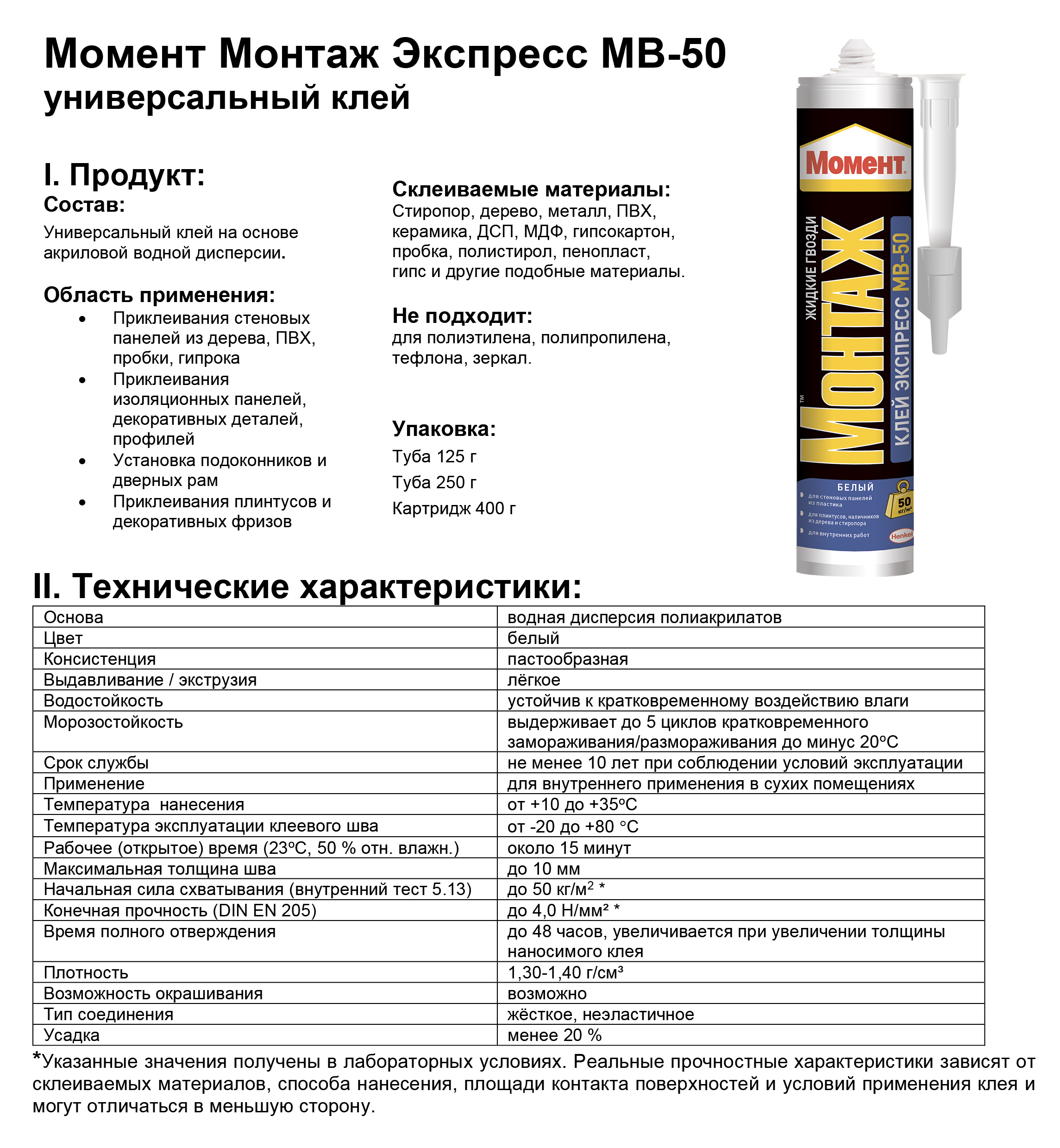 Монтажный клей Момент МОНТАЖ "Экспресс МВ-50" 0.4 кг, белый