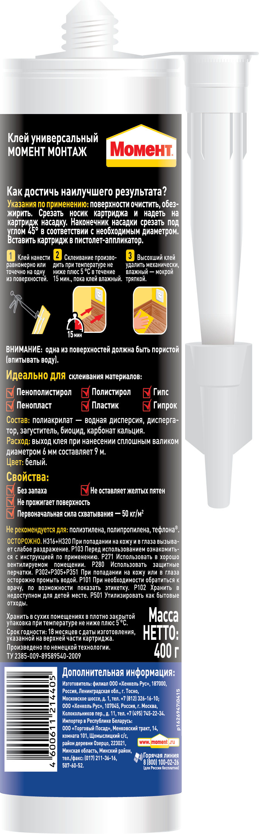 Монтажный клей Момент Монтаж Мгновенная хватка MP-90 (375 г)