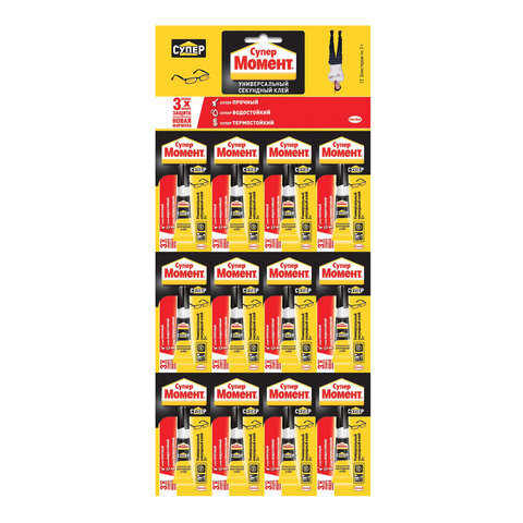 Клей моментальный Супер МОМЕНТ, 3 г, отрывная мультикарта, 608976