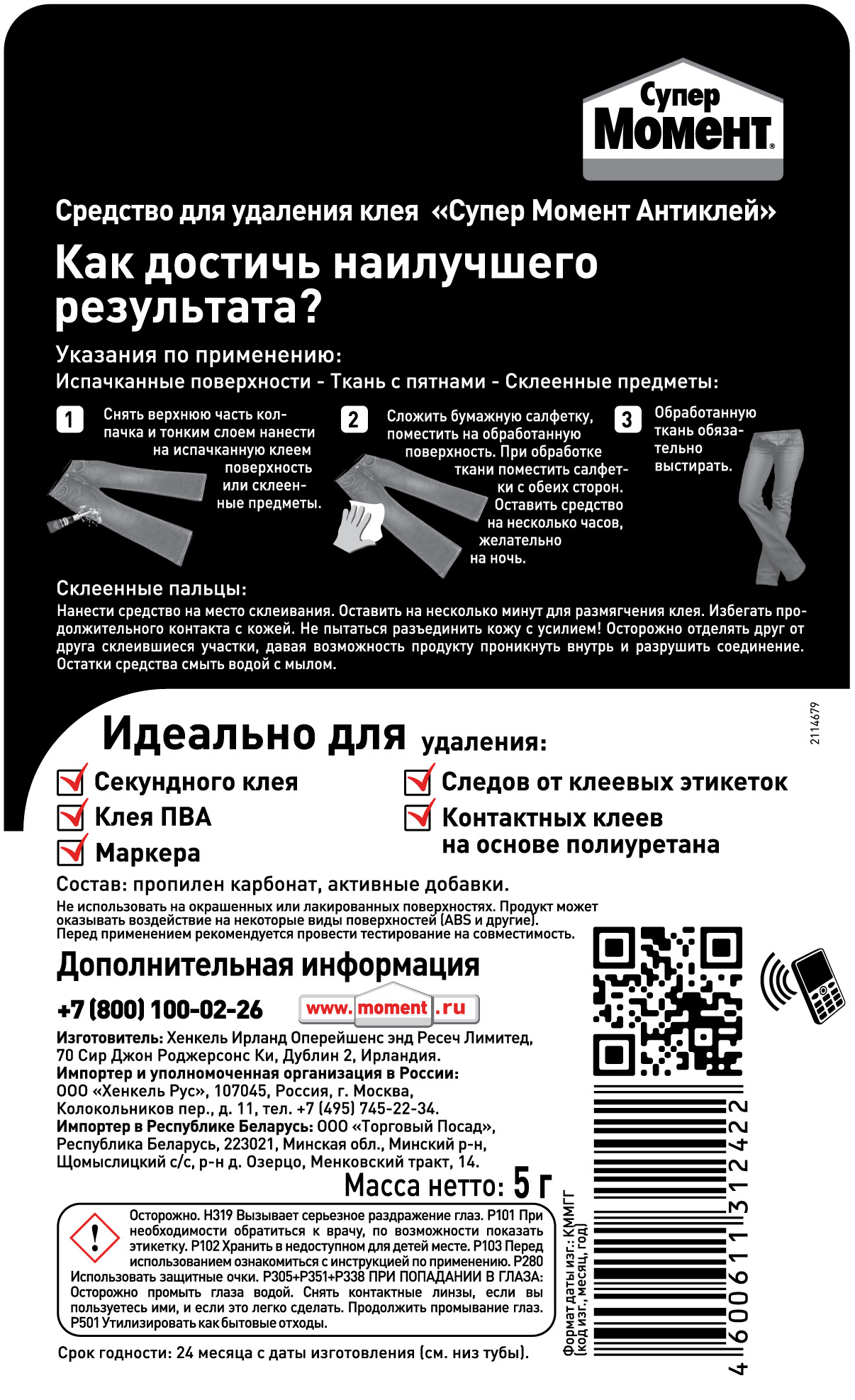 Клей универсальный Момент тов-021854 3 мл 3.0000000000000001E-3 кг, 1 шт.