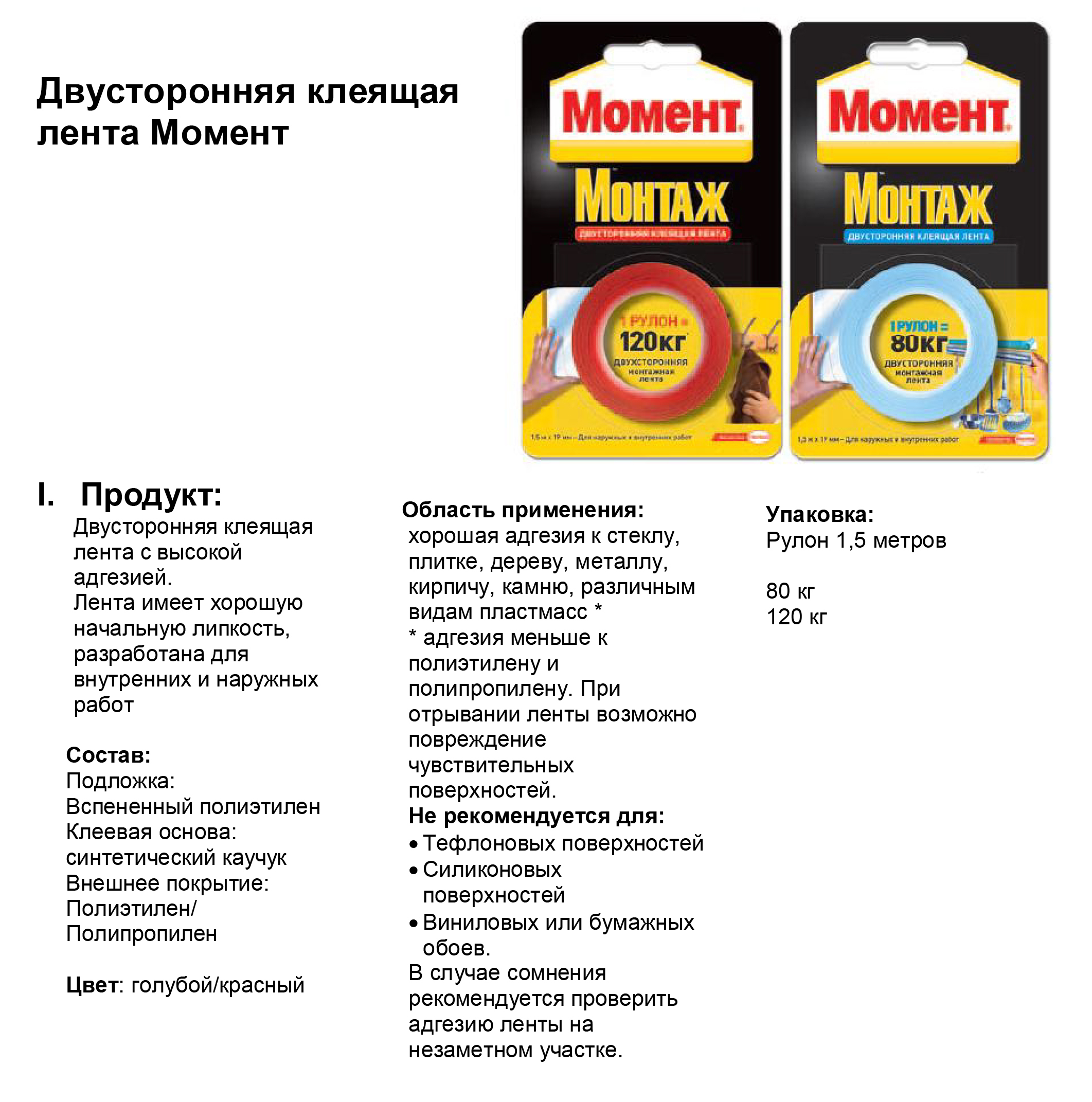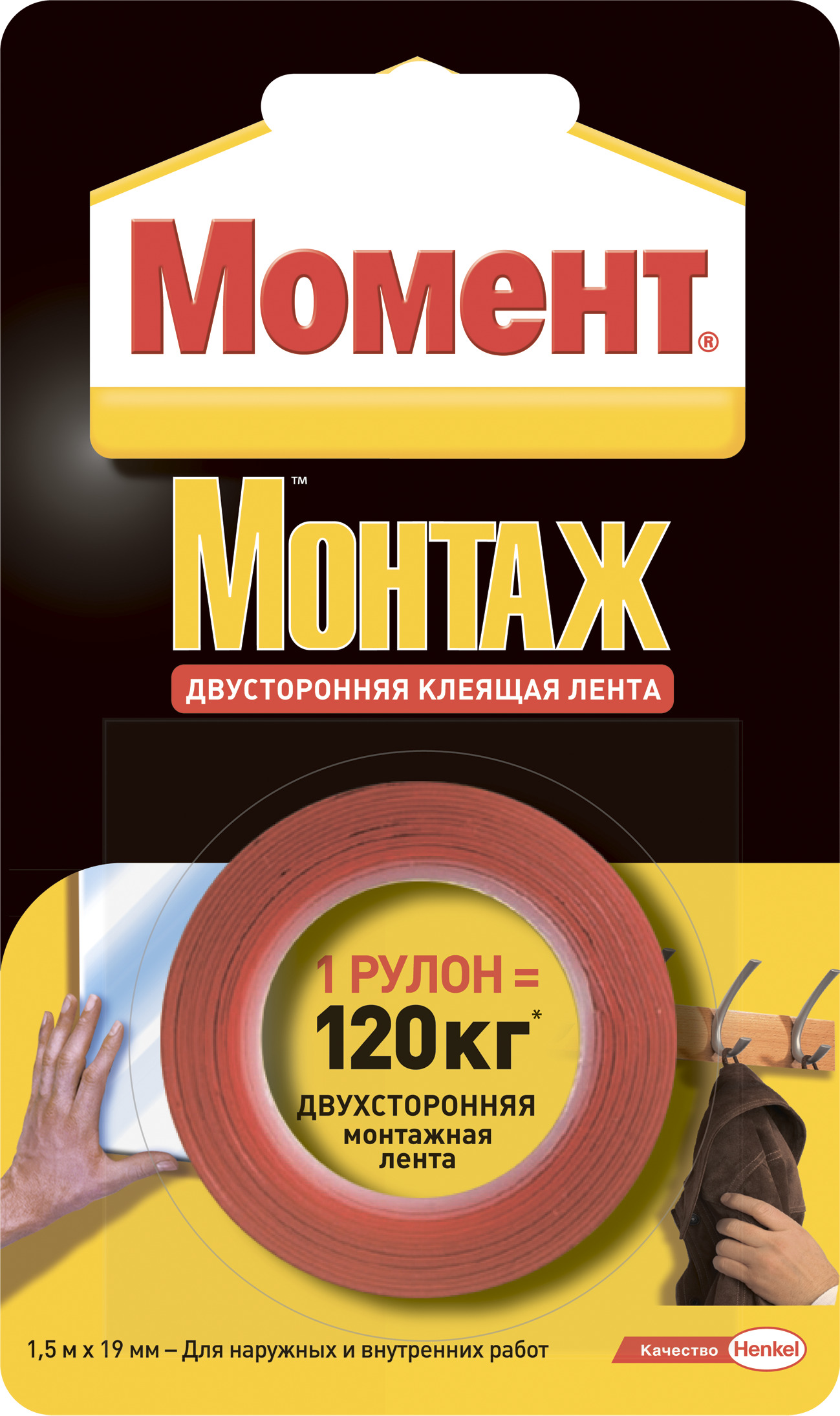 Клейкая лента Момент МОНТАЖ, двусторонняя 19 мм 1.5 м, 1 шт