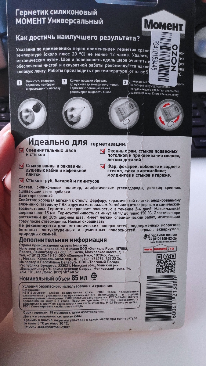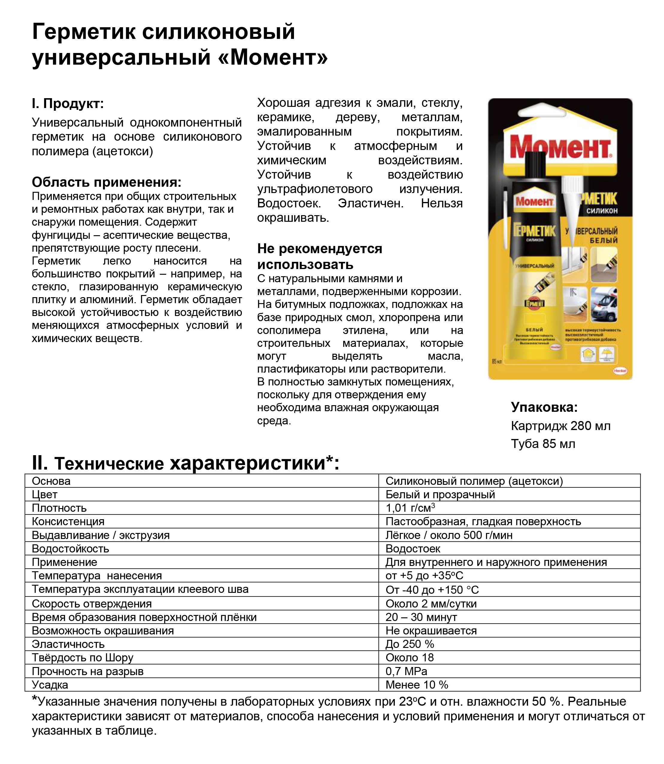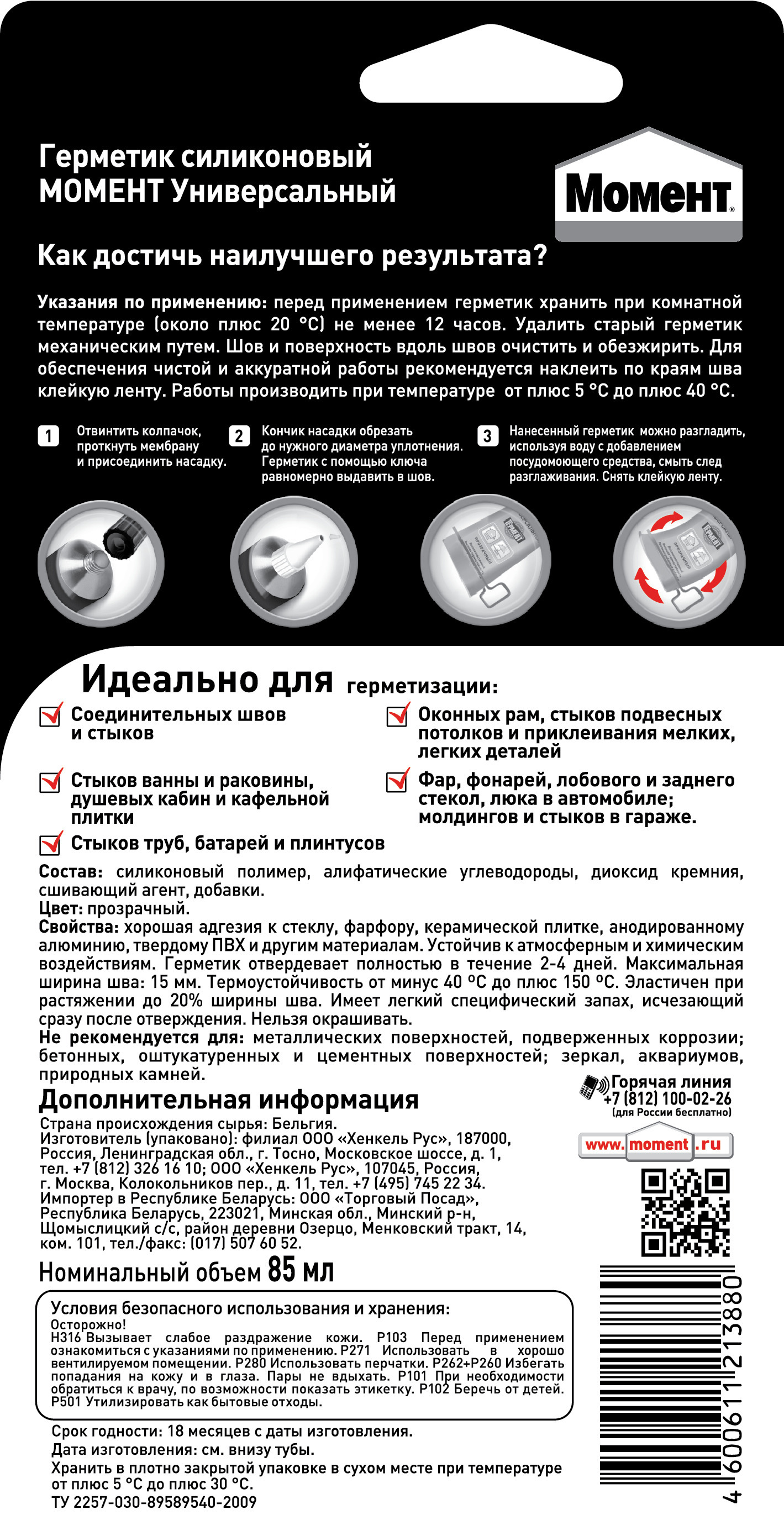 Герметик Силиконовый Момент "Универсальный" (прозрачный) 85мл, 1 шт