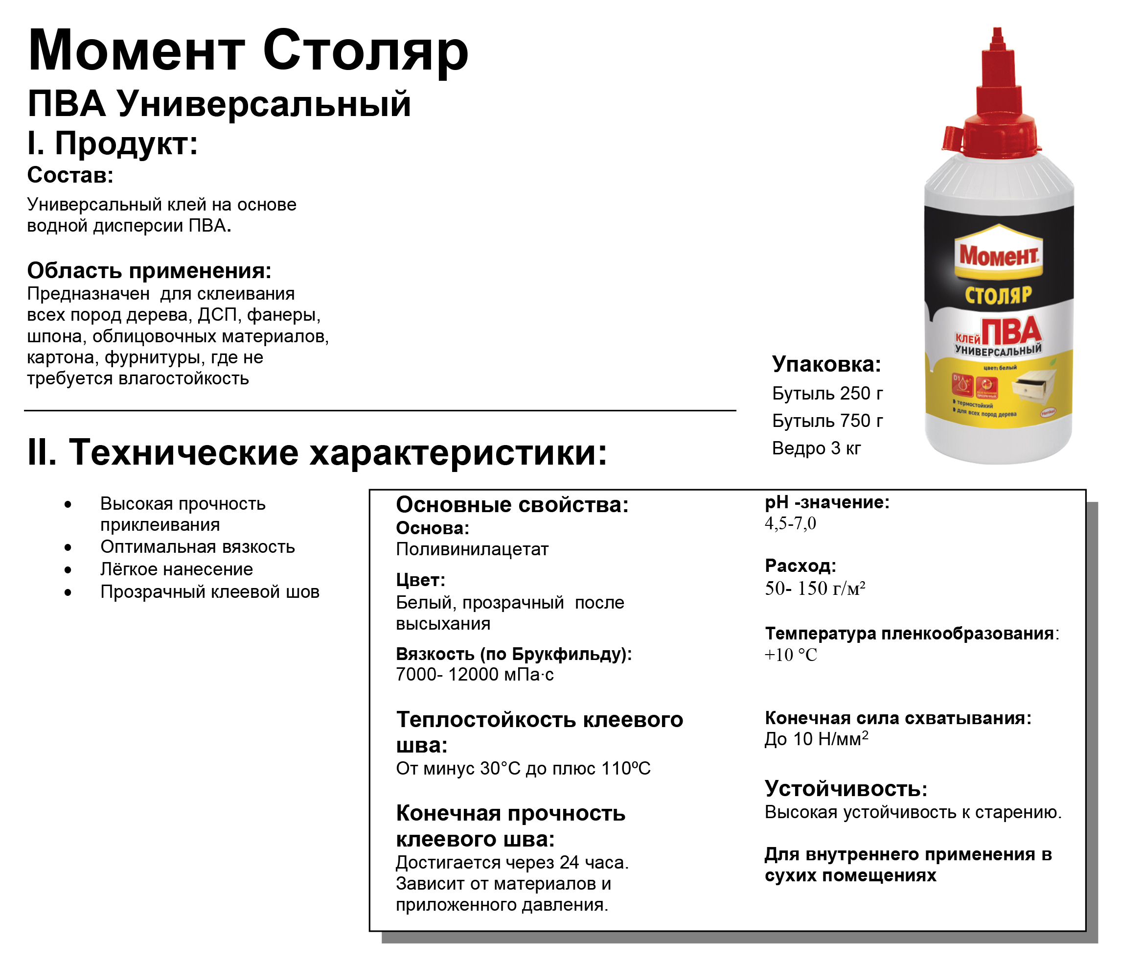 Клей ПВА Момент Столяр "Универсальный", 750 г, 1 шт