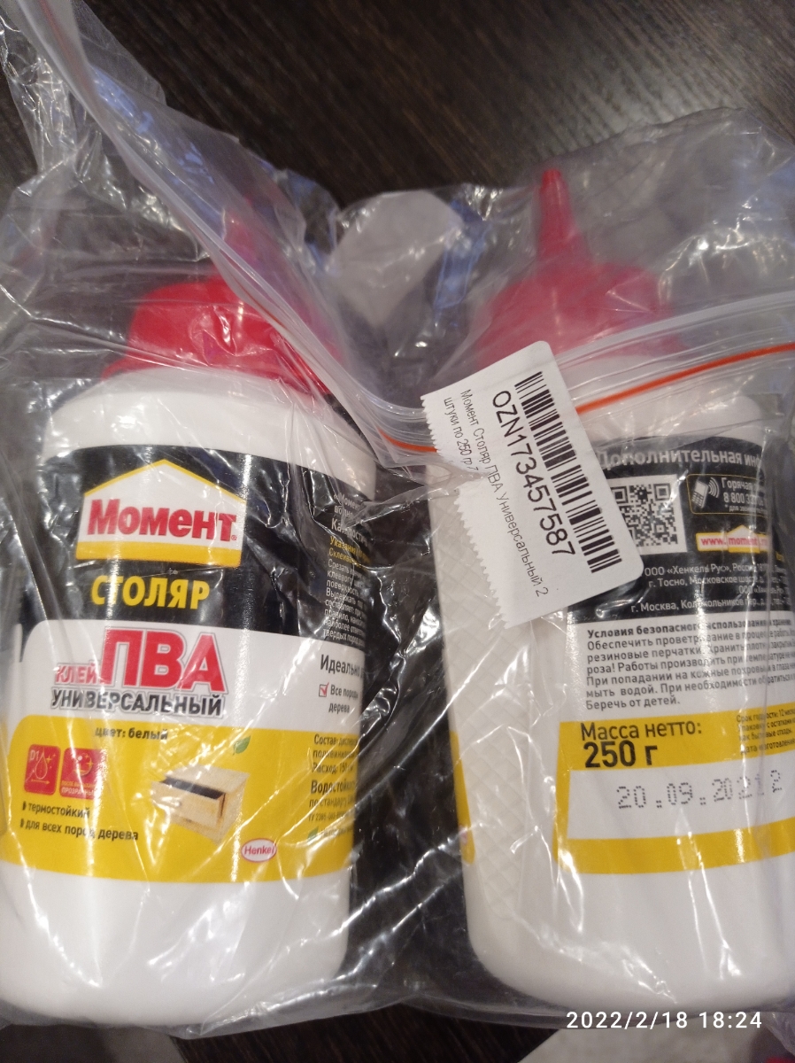 Клей ПВА Момент Столяр "Универсальный", 2 шт по 250 г