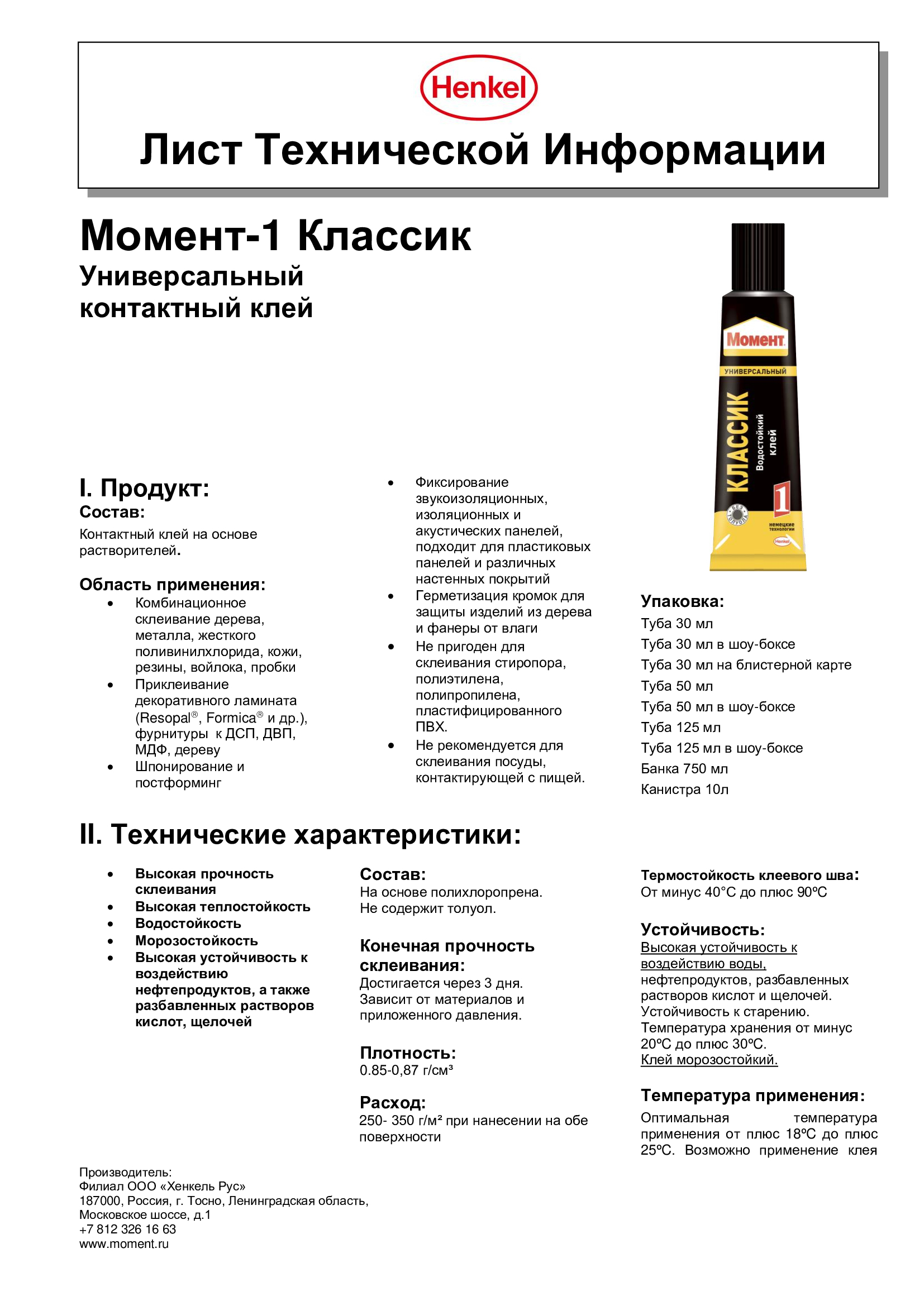 Клей хозяйственный Момент Классик, 100 г., 50 л., 1 шт.