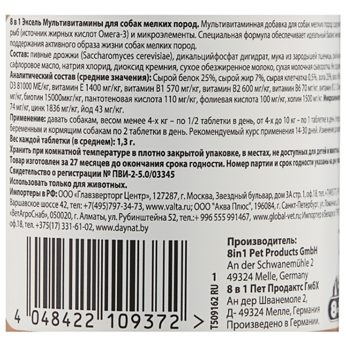 Добавка в корм 8 In 1 Excel Multi Vitamin Small Breed для собак мелких пород